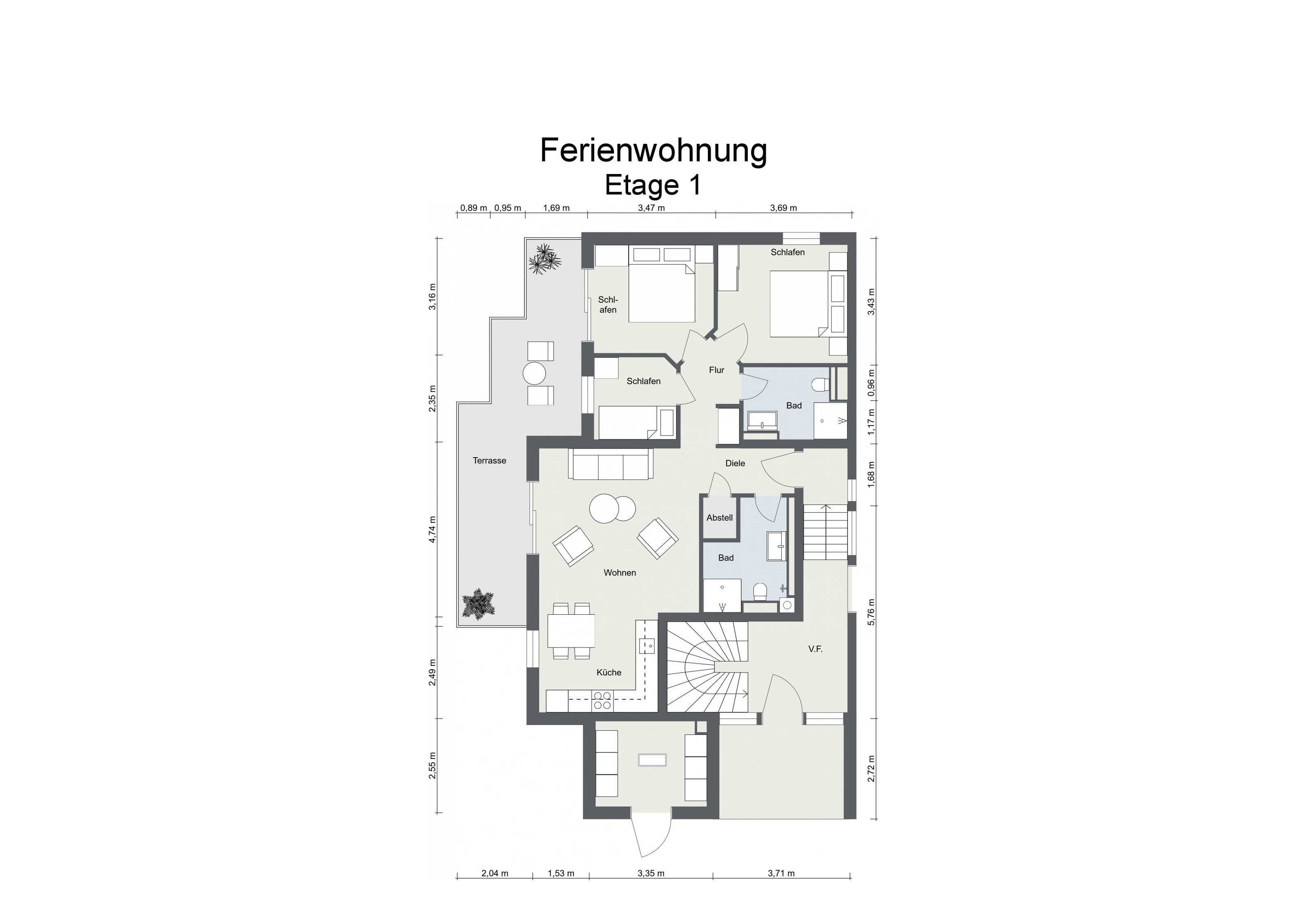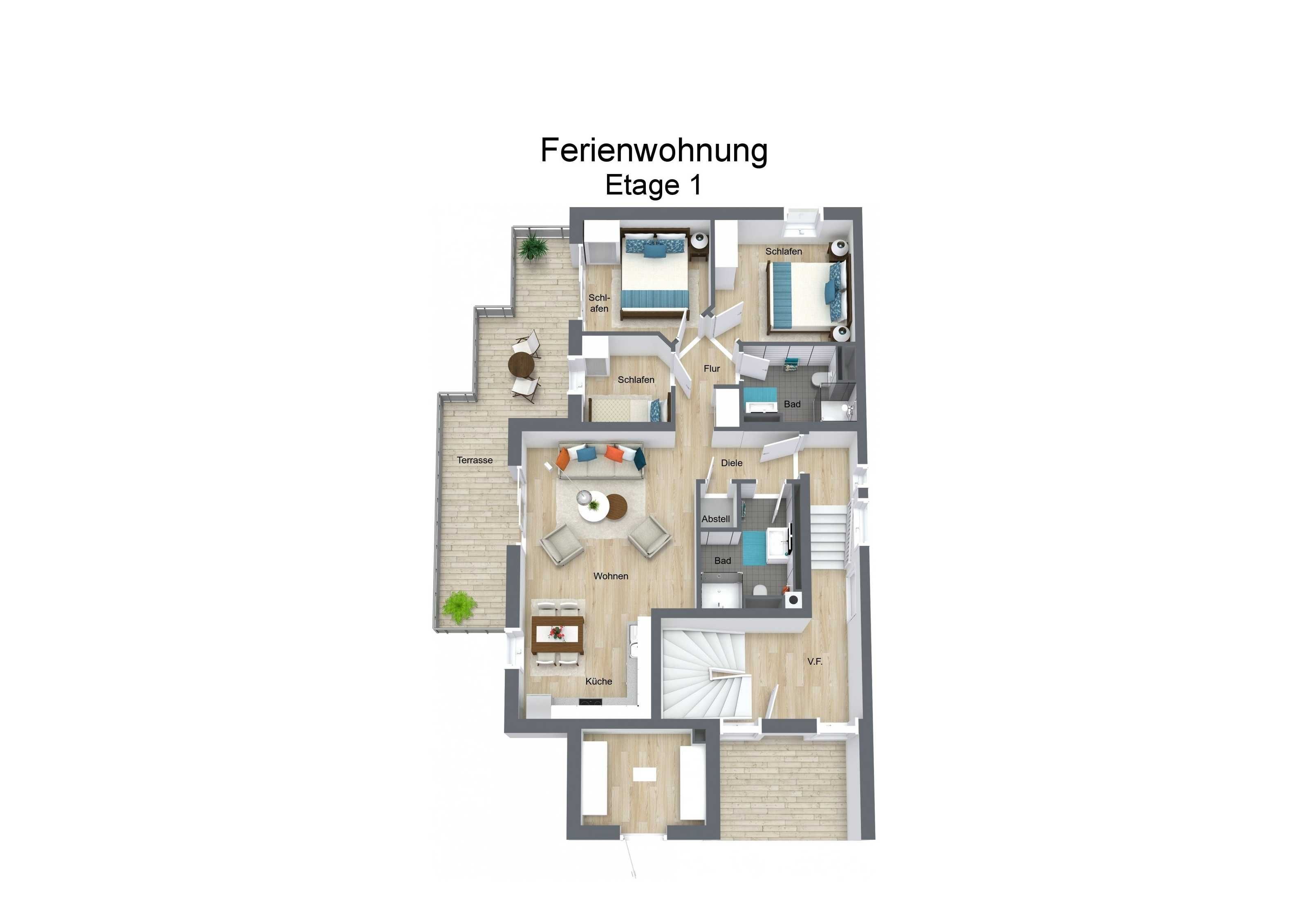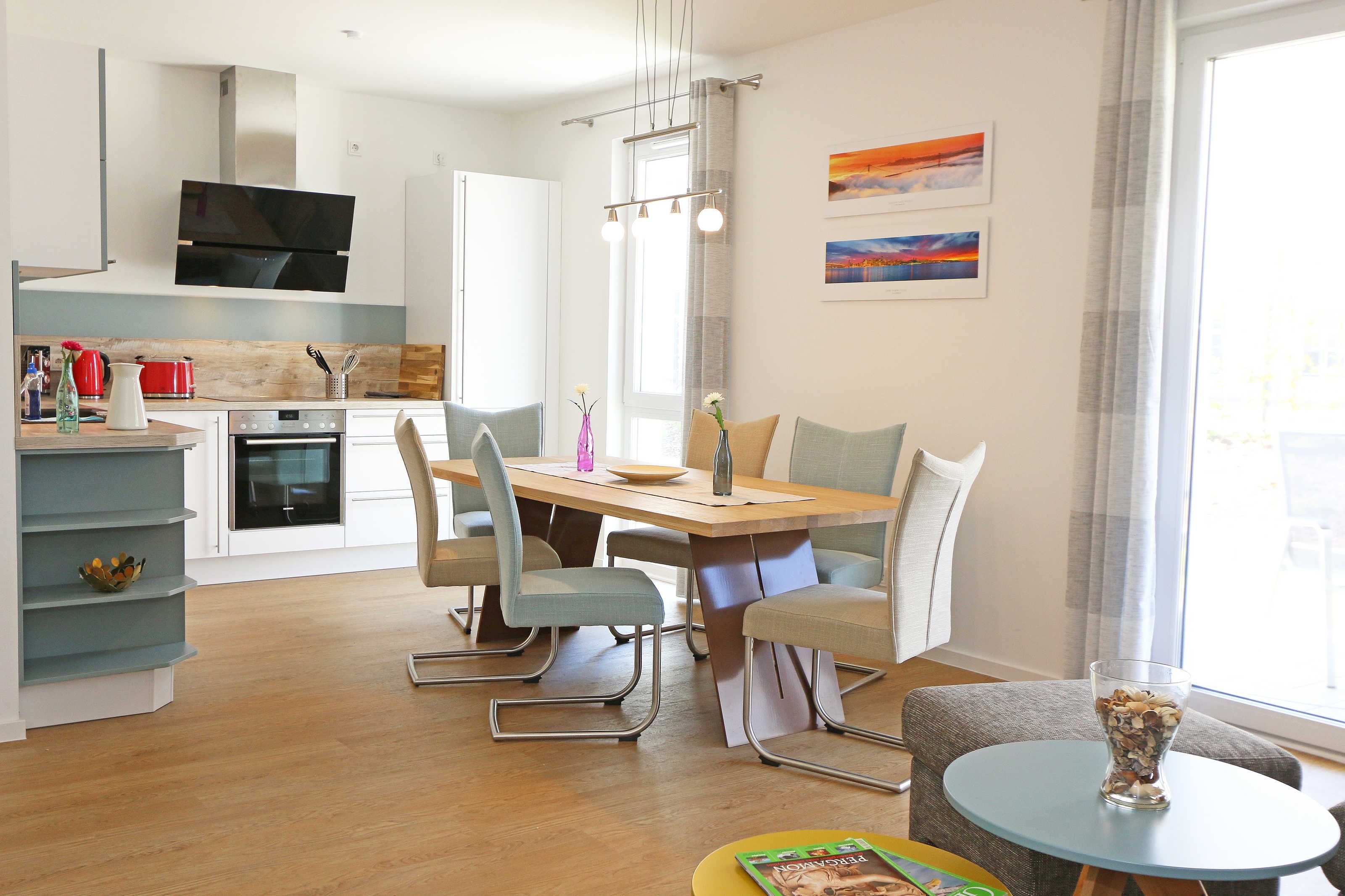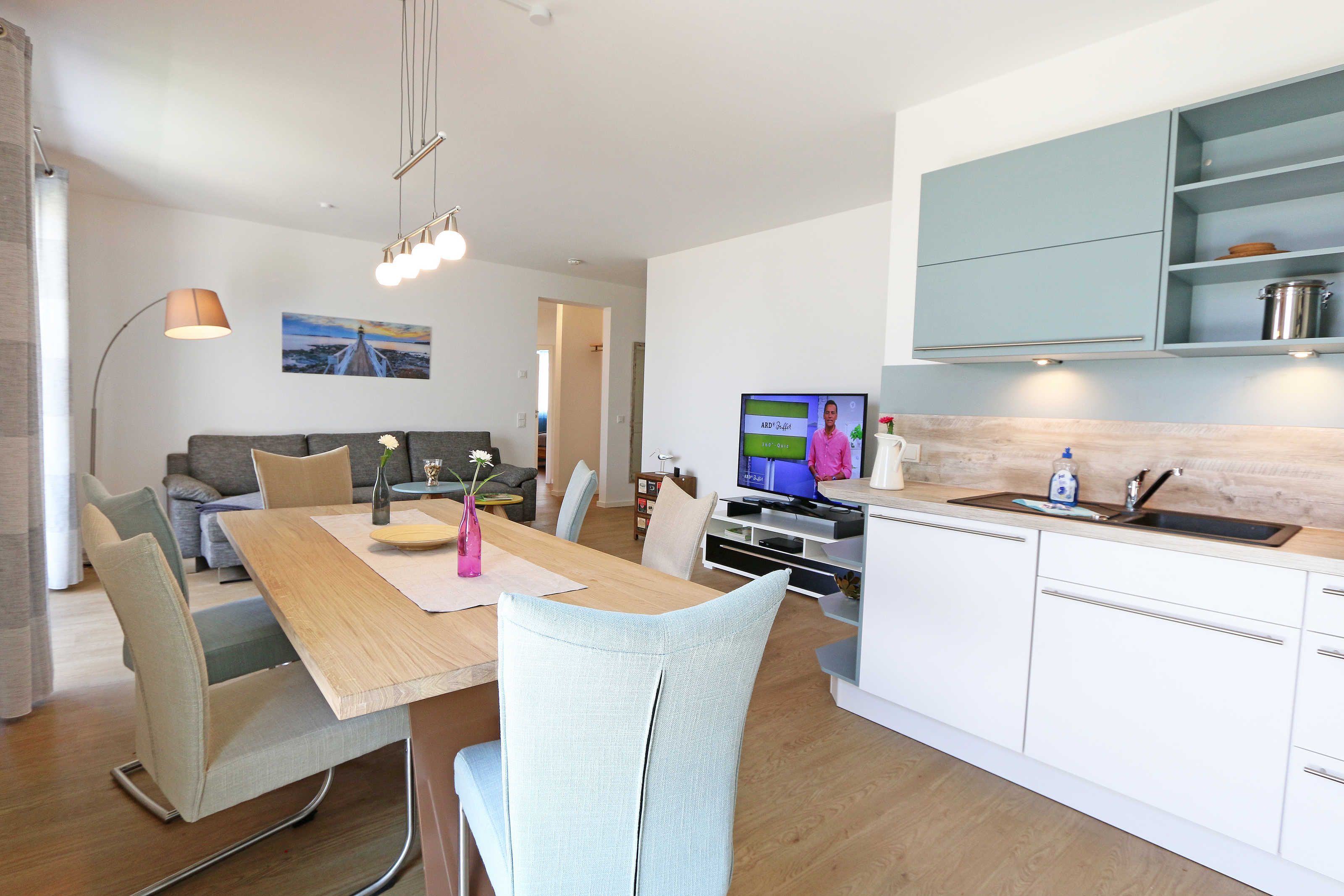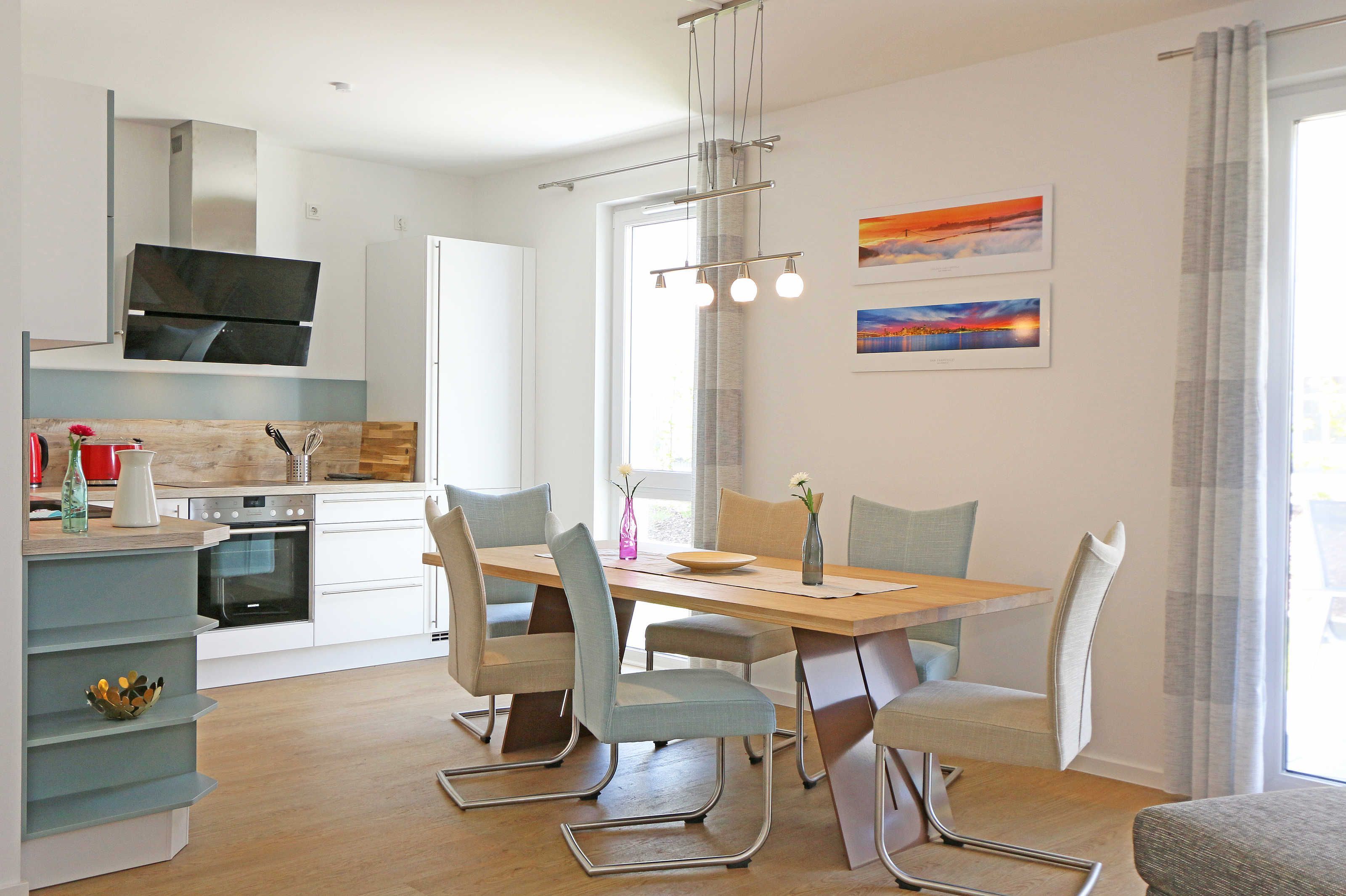 Die Wohnung Nr. 3 in der Villa Anni ist eine komfortable, ca. 83 m² große und stilvoll eingerichtete Nichtraucherferienwohnung im Erdgeschoss. Sie bietet mit ihren 3 Schlafzimmern ausreichend Platz für 5 Erwachsene + 1 Kleinkind bis 3 Jahre im Kinderreisebett. Zusätzlich kann auf die Couch im Wohnbereich zur Schlafcouch erweitert werden. Der kombinierte Wohn-/Koch- und Essbereich mit der modernen und integrierten Küchenzeile lässt mit Ceranfeld, Backofen, Geschirrspüler, Mikrowelle, Kühlschrank mit Gefrierfach, Kaffeemaschine, Senseo Padmaschine, Wasserkocher, Toaster und diversen Küchenutensilien keine Wünsche offen. Ein großzügiger Essbereich fügt sich der Küchenzeile an. Der offene Wohnbereich verfügt über eine gemütliche Sitzecke mit Couchtisch, eine Leselampe, ein Smart-TV, DAB-Radio, Heimkino mit LG 4K Laser Beamer und 100 Zoll Bilddiagonale, Quadral DTS 5.1 Soundsystem, einen Blu-Ray-Player sowie eine Hifi-Anlage mit Bluetooth sowie Internetradio. Auch auf einen Internetanschluss (WLAN) sowie einen Netflix Zugang, Amazon Prime, Disney+ und Sky Q mit folgenden Paketen: Serien und Dokus, Sport: Formel 1, Moto GP und Fußball Bundesliga Zugang müssen Sie in Ihrem Urlaub nicht verzichten. Dieses ist für Sie inklusive! Eine Auswahl an Gesellschaftsspielen, Blu Ray Sammlung und Urlaubslektüre sorgt für gelungene Abwechslung. Die nach Westen ausgerichtete, überdachte und bestuhlte Terrasse mit Sonnenschirm ist direkt vom Wohnbereich sowie aus einem Schlafzimmer aus zu erreichen. Das erste Schlafzimmer verfügt über ein Doppelbett mit Kaltschaummatratzen (1,60m x 2,00m / H3), Flachbild-TV, verstellbaren Lattenrosten, Nachttischablagen und einen Kleiderschrank. Das zweite Schlafzimmer verfügt über ein Doppelbett mit Kaltschaummatratzen (1,60m x 2,00m / H3), Nachttischablagen, Flachbild-TV und einen Kleiderschrank. Im dritten Schlafzimmer befindet sich ein Einzelbett (0,90m x 2,00m) mit Nachttischablage und einen Kleiderschrank. Zwei Bäder sind mit ebenerdigen Duschen, Waschplatz, WC, Kosmetikspiegel, Fön und Handtuchheizkörper ausgestattet. Ein Bad verfügt zusätzlich über eine Waschmaschine. Alle Räumlichkeiten sind mit Fußbodenheizung versehen und sorgen für eine angenehme Wärme. Für unsere kleinen Gäste steht 1x Kinderreisebett (ohne Zusatzmatratze, ohne Bettinlett) und 1x Hochstuhl inklusive zur Verfügung. Ihre Fahrräder können Sie auf der Terrasse abstellen, welche Sie von außen bequem erreichen können. Ein eigener PKW-Stellplatz (Nr. 3) befindet sich in der Tiefgarage (Einfahrtshöhe 2,00 m) des Hauses. Haustiere sind in der Wohnung nicht erlaubt! Die Erstausstattung eines Wäschepaketes (komplette Bettwäsche, 1 Duschhandtuch, 2 kleine Handtücher) können Sie bis 14 Tage vor Anreise gegen einen Aufpreis dazu buchen oder durch eigene ergänzen. Ab 2 gebuchten Paketen erhalten Sie einmalig 1 Geschirrhandtuch und 1 Duschvorleger hinzu.