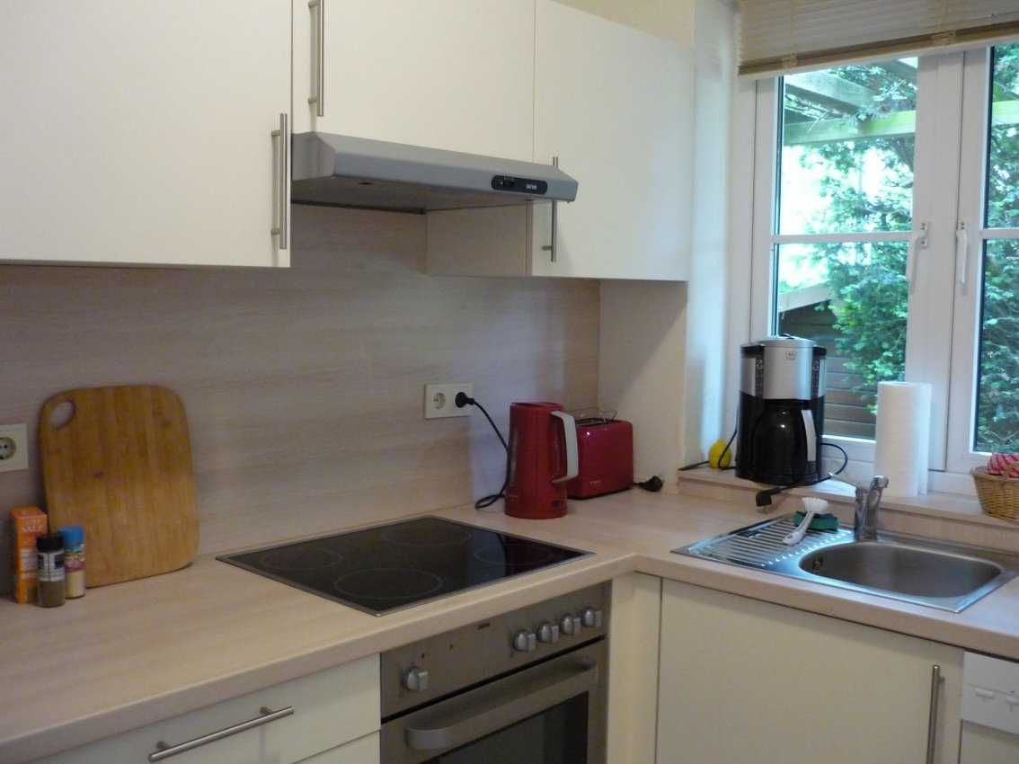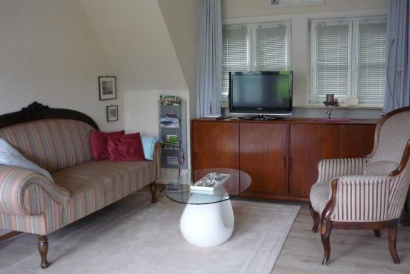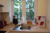 Die kleine und besonders gemütliche Ferienwohnug hat ein Schlafzimmer und ein Wohnzimmer sowie eine kleine Küche und ein Duschbad. Bei Bedarf ist ein Wandklappbett (1,20 m) als Zusatzbett im Wohnzimmer vorhanden. Der wunderschöne und gepflegte Garten darf von den Gästen mitgenutz werden.