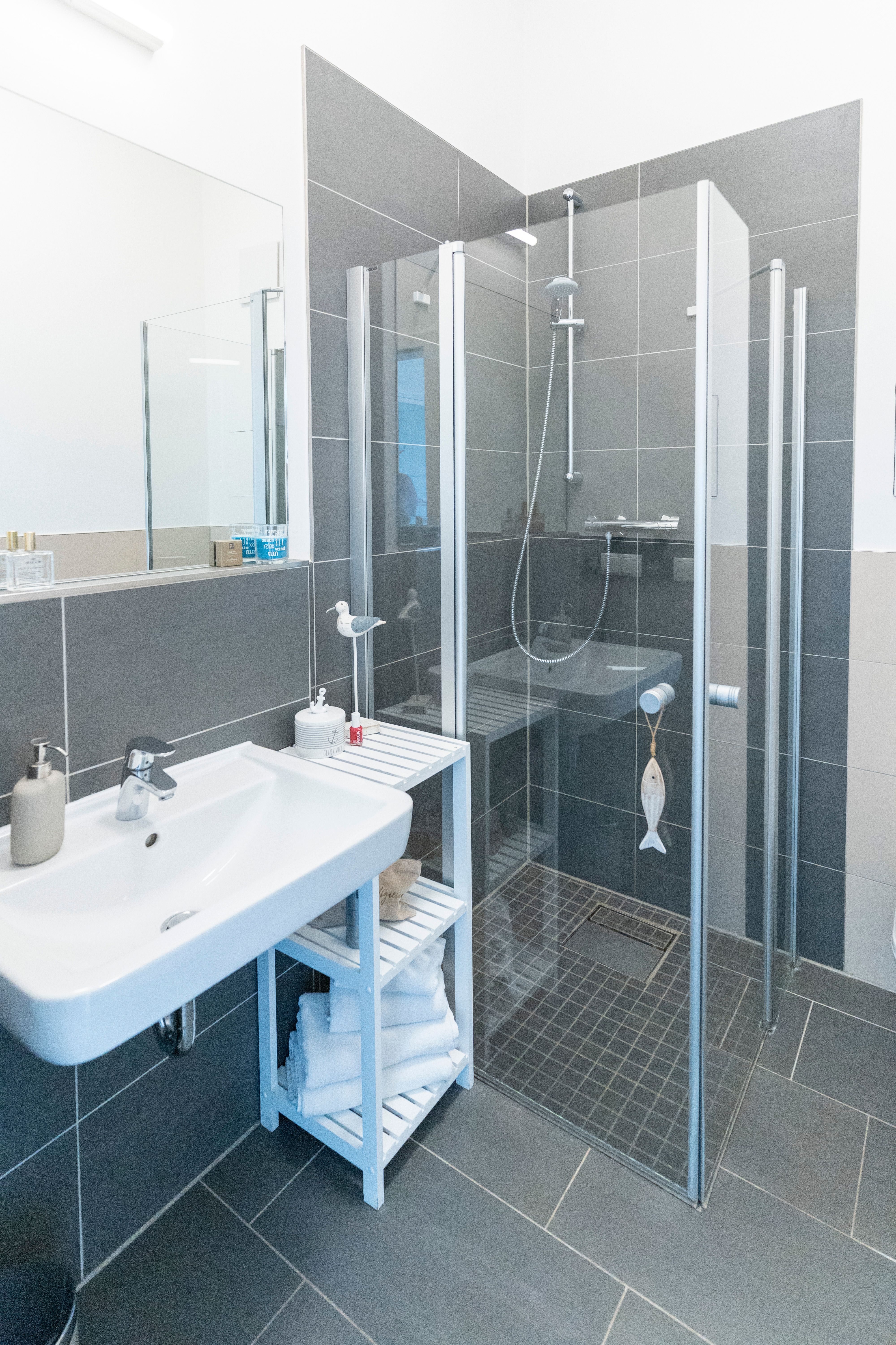 Alle Wohnungen verfügen über moderne Bäder und bodentiefe Duschen. Im Preis ist die Erstausstattung mit Bettwäsche, Handtüchern sowie Geschirrtuch und Spülmittel enthalten.