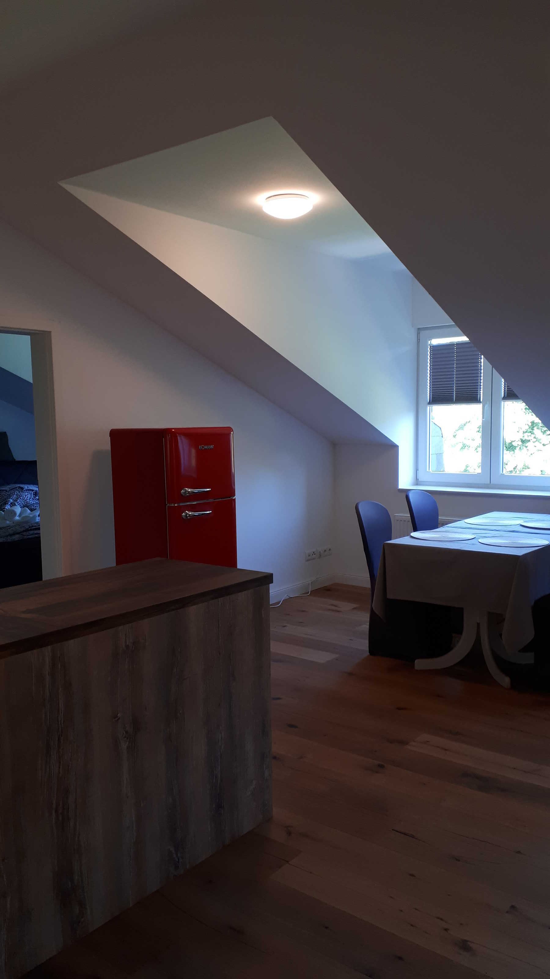Die Schloss Superior Suite (60 m²) ist ein großzügig geschnittenes, modern eingerichtetes Apartment im Dachgeschoss mit separatem Schlafzimmer und großem Doppelbett (1,80 x 2,00).Das Wohnzimmer ist mit einer großen Schlafcouch (1,60 Meter breit), sowie einer hochwertigen, modernen Küchenzeile inklusive Geschirrspülmaschine, Nespresso Kaffeemaschine und weiteren Küchenutensilien ausgestattet. Die Wohnung verfügt über 2 neue, moderne Bäder mit bodentiefen Duschen.