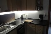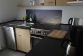 Die Küche ist mit E-Herd und Backofen, Mikrowelle, Kühlschrank, Gefrierfach, Spüle, Spülmaschine, Kaffeemaschine und Wasserkocher ausgestattet.