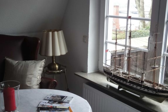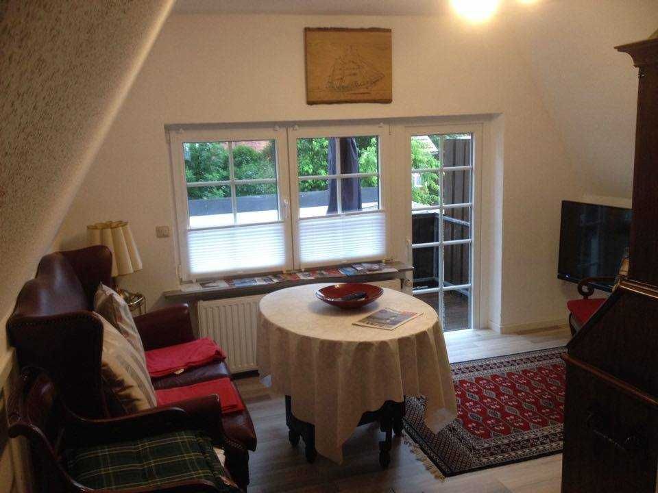 Eine wunderschöne Dachgeschosswohnung. Das Schlafzimmer ist mit einem Doppelbett und Einbauschränken ausgestattet sowie einer Truhe aus dem 1800 Jahrhundert. Die Küche ist mit E-Herd, Backoffen, Kochgeschirr, Mikrowelle, Kühlschrank, Gefrierfach, Geschirrspülmaschine, Spüle, Kaffeemaschine, Wasserkocher,und dem tägliche Geschirr ausgestattet. Die Essecke ist mit zwei Stühlen und Tisch ausgestattet. Die Stube ist mit einem Sofa, Tisch, und zwei Sessel, Kommode und einem Schreibsekretär aus dem 1800 Jahrhundert stilvoll ausgestattet. Der Balkon ist mit zwei Stühlen, Tisch und einen Sonnenschirm ausgestattet. Das Auto kann vor derTür abgestellt werden,