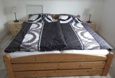 Eine schöne Dachgeschosswohnung für 2 Personen. Ein Schlafzimmer mit Doppelbett, Einbauschränke sowie eine alte Truhe.