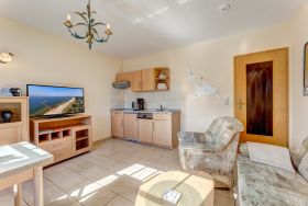 Die 47m² große, gemütliche Ferienwohnung mit Balkon und W-Lan verfügt über einen Wohn-/Essbereich mit Schlafsofa, Flachbildfernsehr und einer offenen Küchenzeile. Das Schlafzimmer ist mit einem Doppelbett und einem Kleiderschrank für Ihre Urlaubsgarderobe ausgestattet. Ein geräumiges Badezimmer mit Dusche/WC, Fön und beleuchtetem Kosmetikspiegel erwartet Sie. Zusätzlich steht Ihnen ein Safe für Ihre Wertsachen in der Wohnung zur Verfügung. Die Erstausstattung Bettwäsche und Handtücher sind inklusive. Ein Reisebettchen und ein Hochstuhl können auf Wunsch bereit gestellt werden.