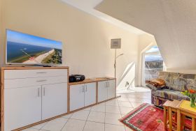 Die Ferienwohnung Parchenblick befindet sich im 1. Obergeschoss des Hauses und ist ca. 50m² groß. Im gemütlichen Wohnbereich mit Couch und Flachbildfernseher befindet sich auch die offene Küchenzeile mit Spülmaschine, Backofen, Herd, Kühlschrank mit Gefrierfach, Toaster, Wasser- und Eierkocher. Im Schlafzimmer befindet sich ein Doppelbett und außerdem die Möglichkeit für zwei Aufbettungen (Polsterliege und Kleinkinderbett). Über eine Leiter vom Flur sind die beiden Schlafplätze im kuscheligen, verschließbaren Spitzboden (mit Dachfenster) der Ferienwohnung zu erreichen. Diese Schlafmöglichkeit kann auf Anfrage dazu gebucht werden. Die Wohnung verfügt über einen Internetzugang via W-LAN und ist kostenfrei nutzbar. Die Erstausstattung Bettwäsche und Handtücher sind bereits im Preis enthalten. Zusätzlich ist ein Safe für Ihre Wertsachen in der Wohnung vorhanden.