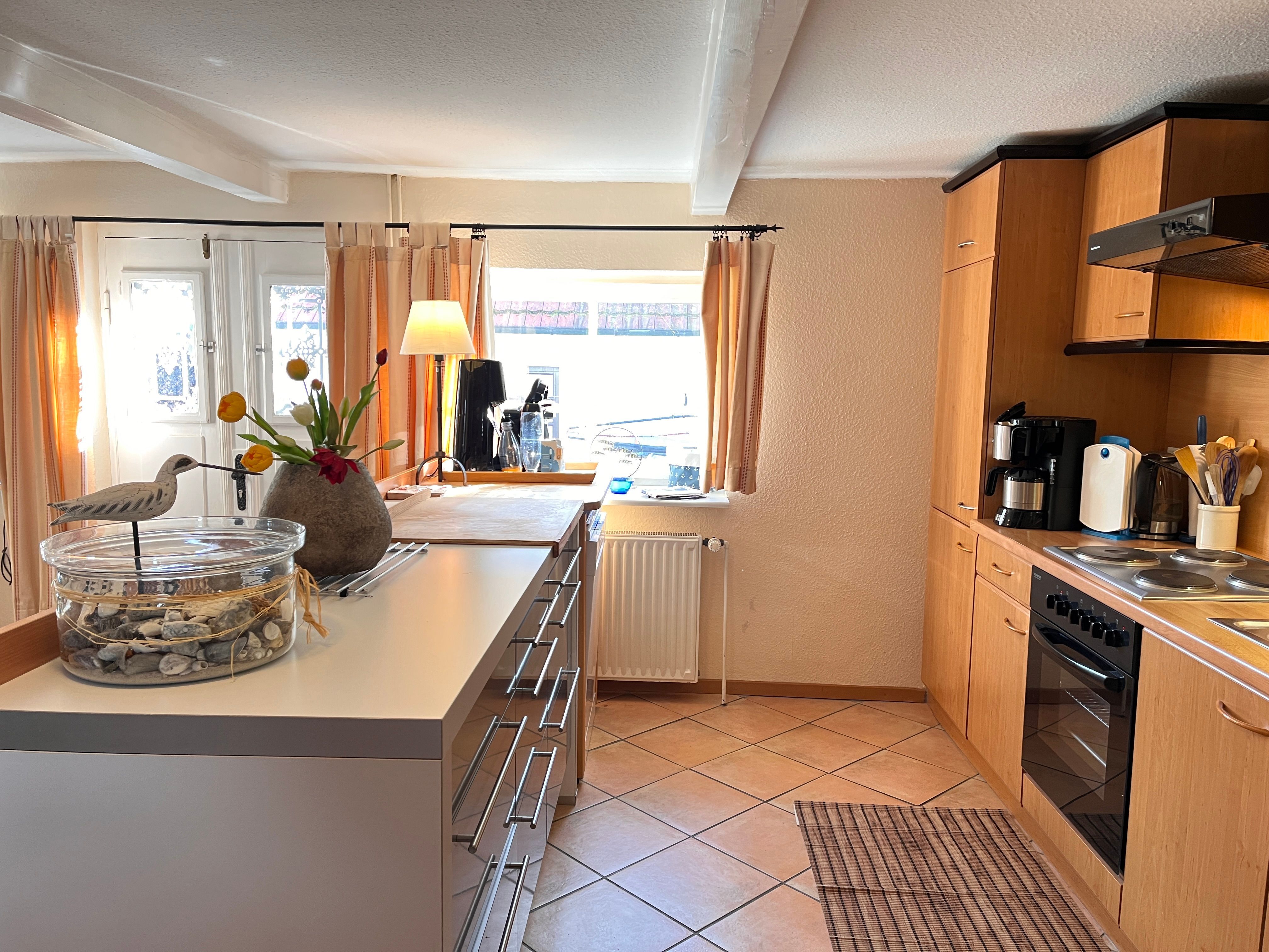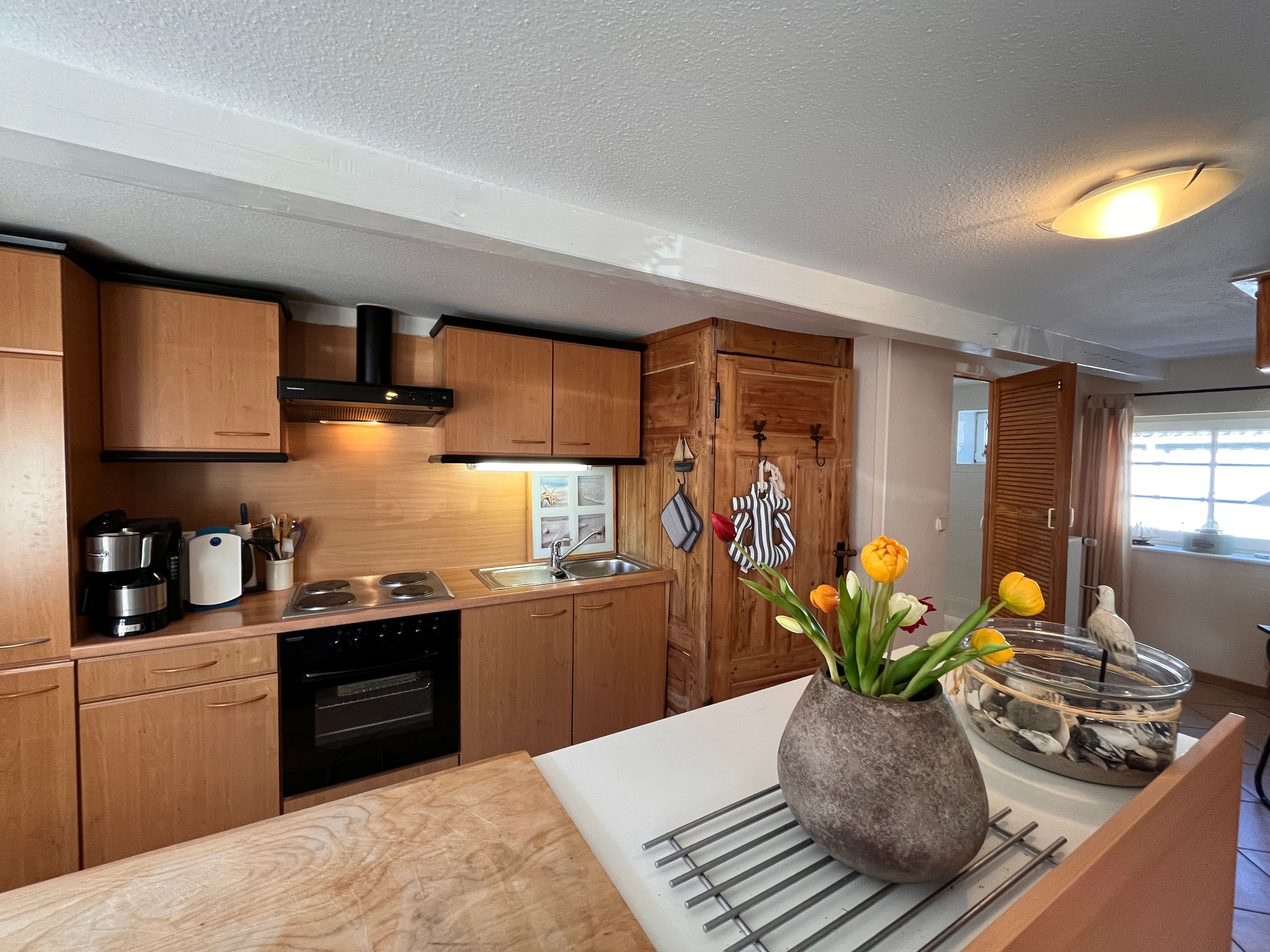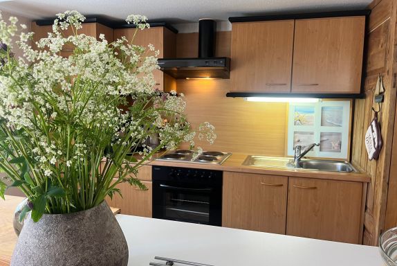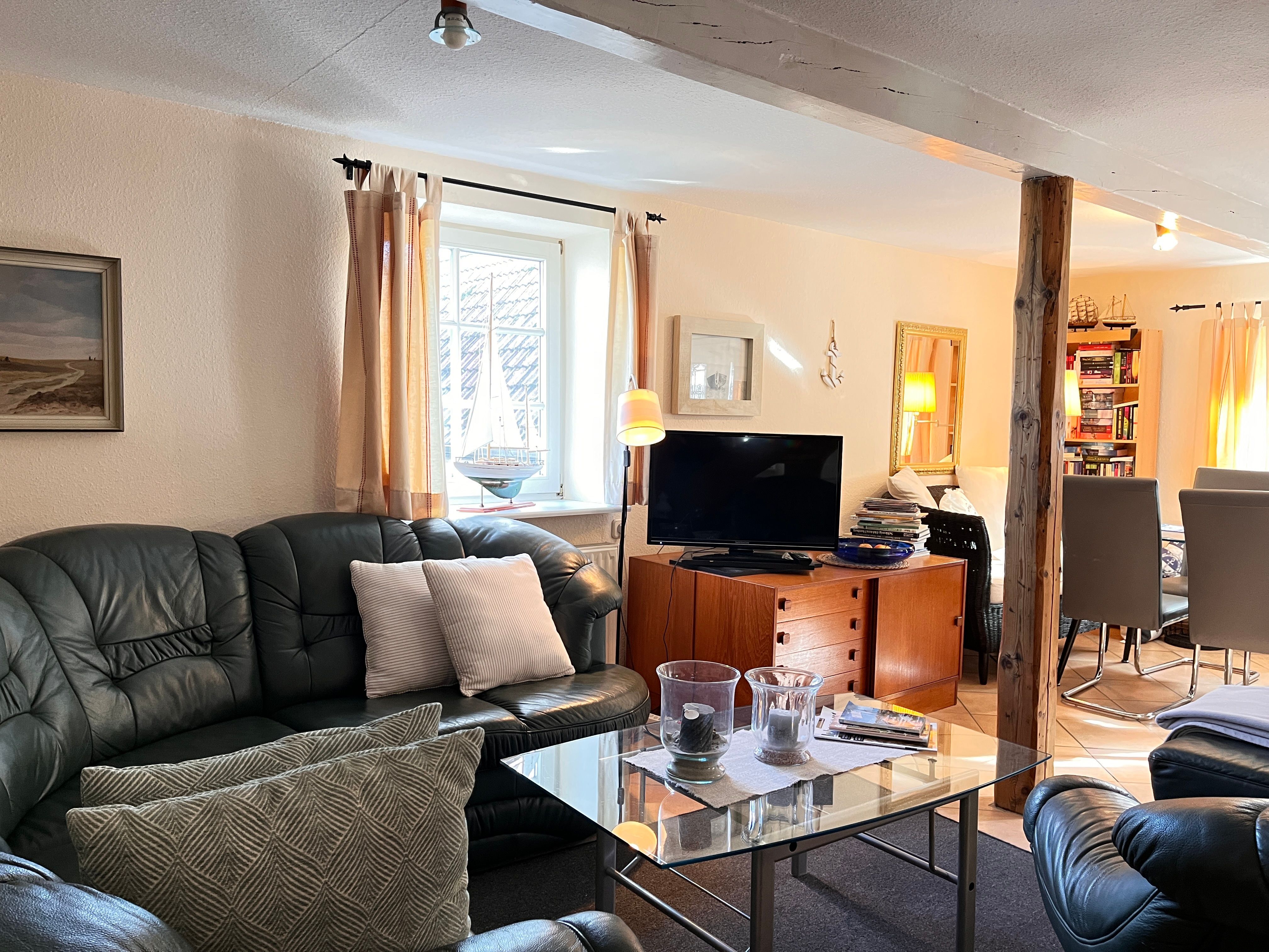 Aufteilung: 2 Schlafräume mit je 2 Einzelbetten, 1 offene Küche, großer Wohnraum mit gemütlicher