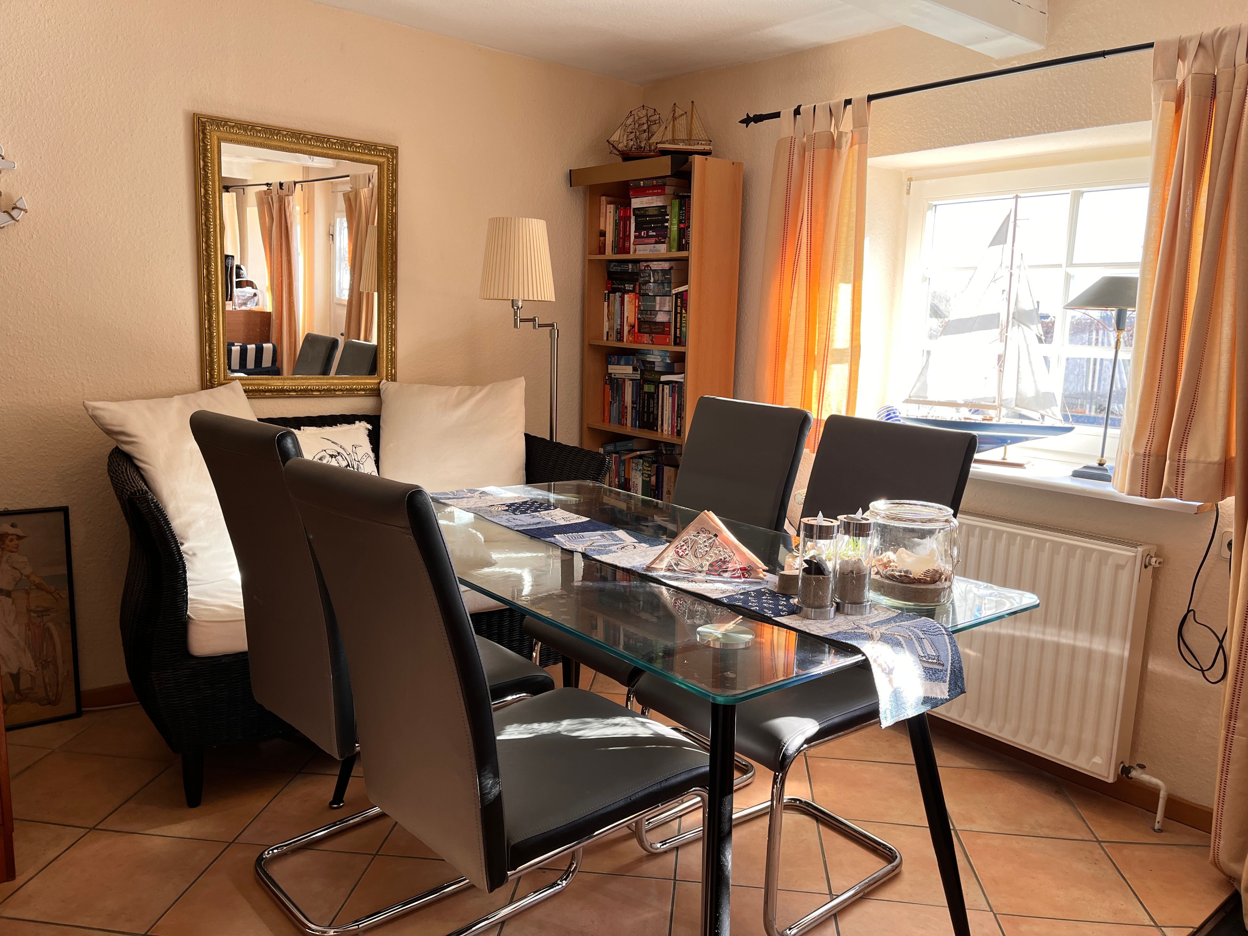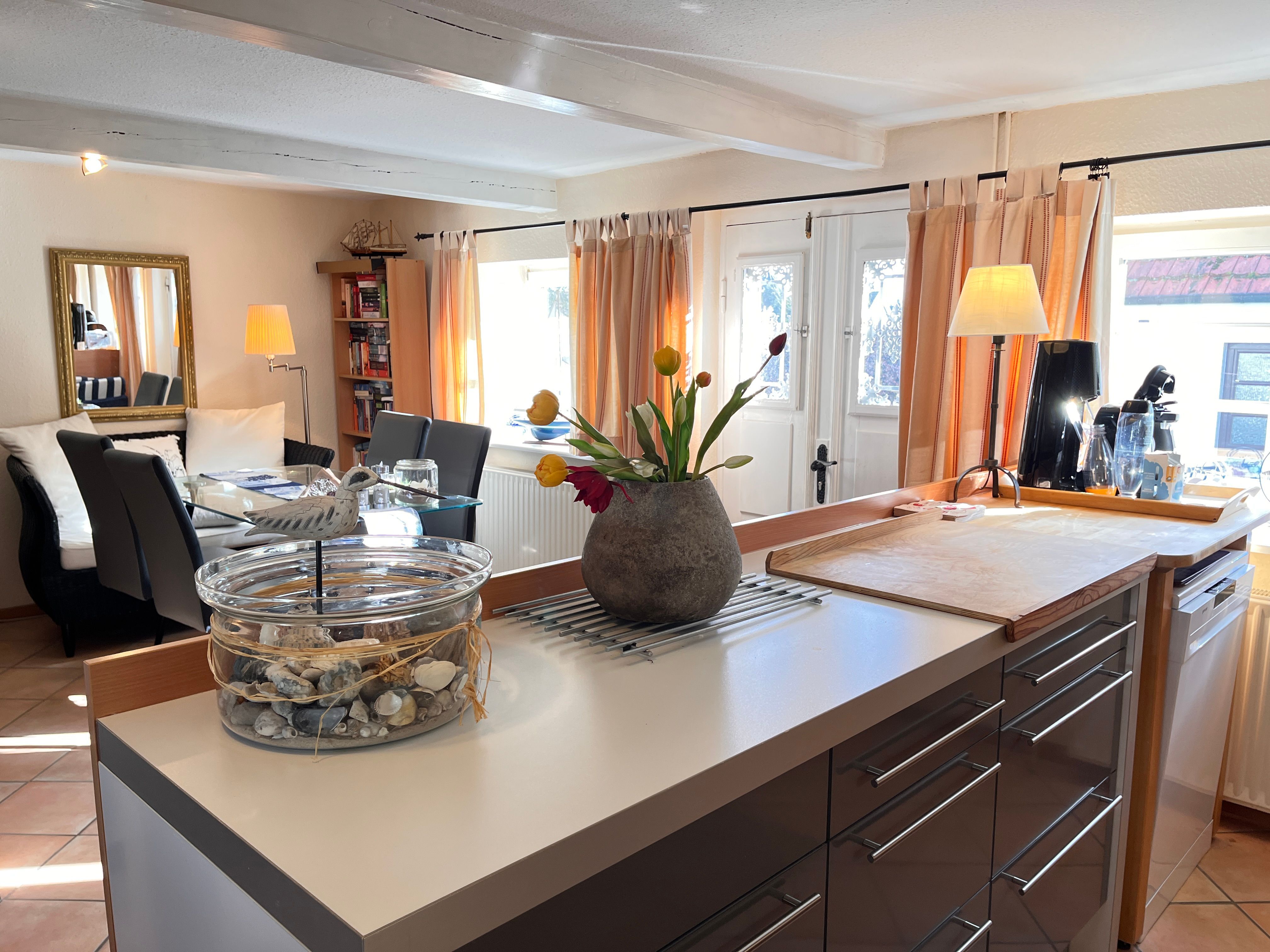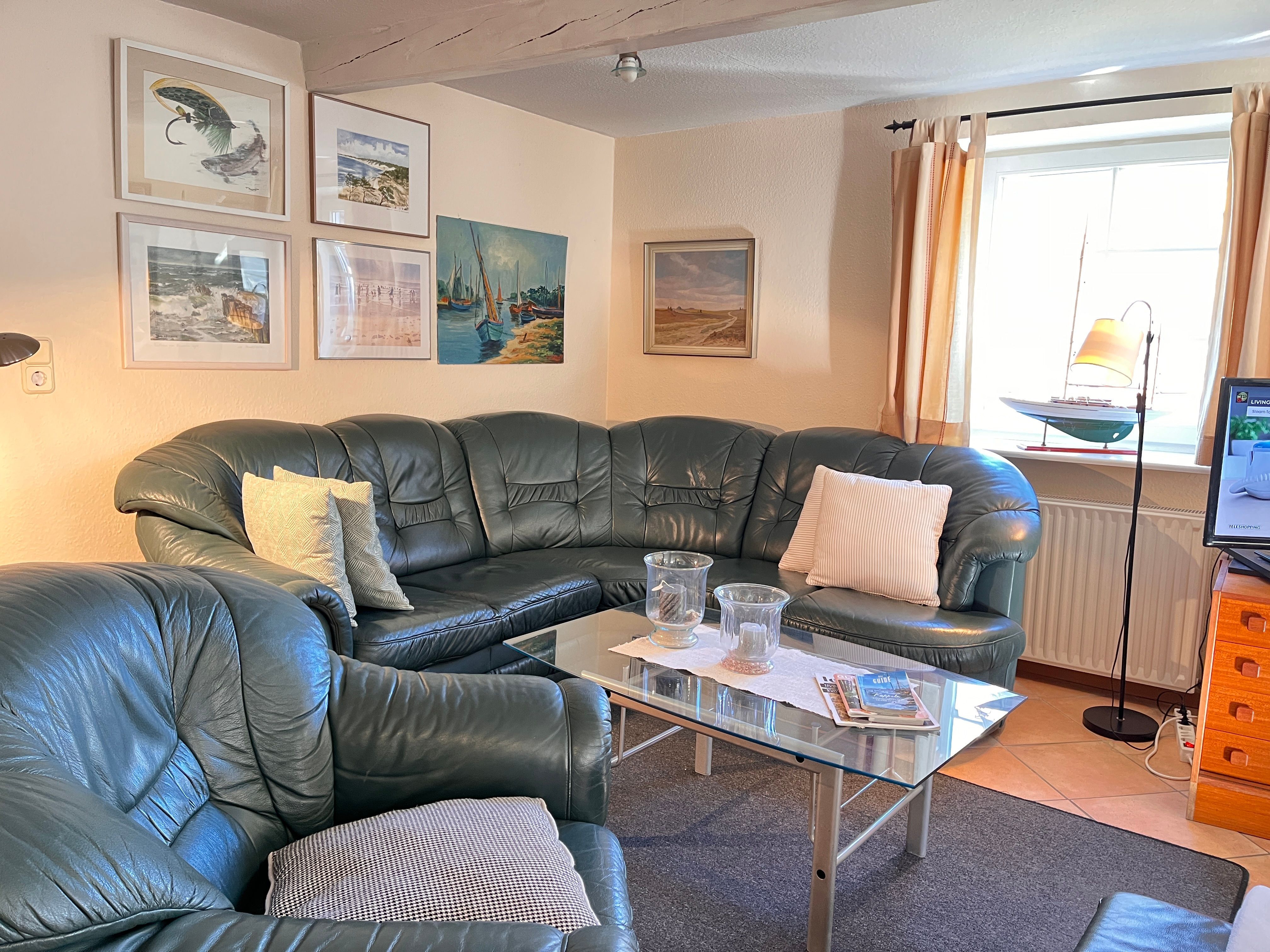 Aufteilung: 2 Schlafräume mit je 2 Einzelbetten, 1 offene Küche, großer Wohnraum mit gemütlicher