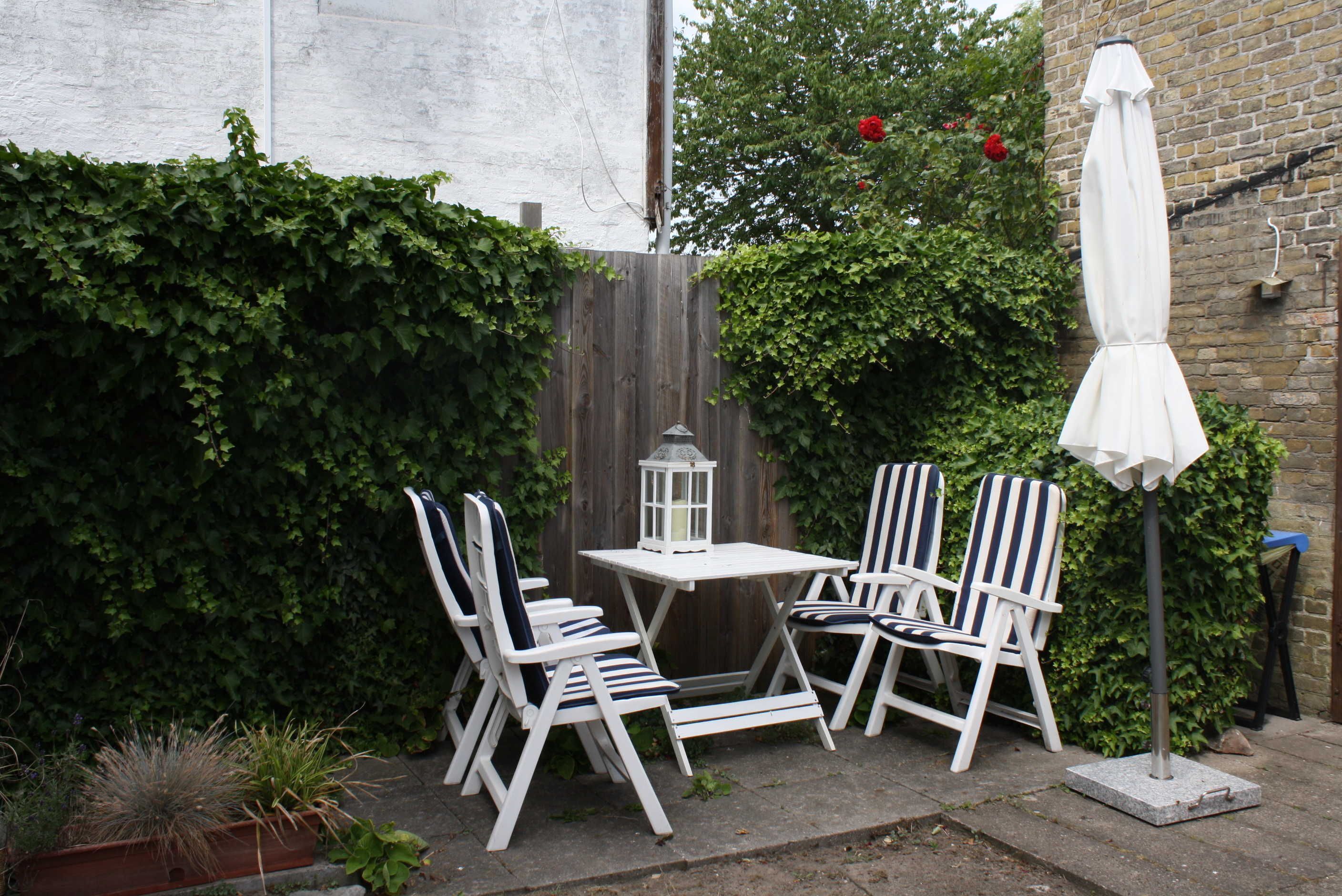 Außenbereich: Gartenstühle und Grill