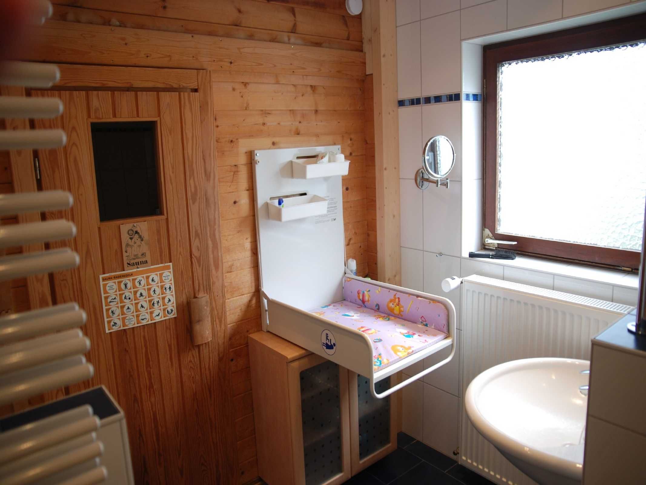 - Wellnessbad im EG mit Sauna (1 Saunahandtuch po Peson inkl.), Badewanne, Dusche und
