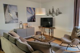 Das Wohnzimmer hat einen Kamin, das Kaminholz ist von den Gästen mitzubringen. Alle Wohnungen sind Nichtraucherwohnungen. In der offenen Küchenzeile befinden sich ein Backofen und Geschirrspüler, sowie umfangreiche Küchenutensilien. Für unsere kleinen Gäste können Sie Kinderreisebett und Kinderhochstuhl à 10,00 € /pro Woche dazubuchen. Für die nächtliche Ruhe stehen Ihnen 1 Schlafzimmern mit einem Doppelbett 1,80 x 2,00 m (getrennte Matratze) und ein Schlafzimmer mit 2 Einzelbetten (0,90 x 2,00 m) zur Verfügung, die Bettwäsche und Handtücher können bei der Zimmervermittlung dazu gebucht werden - ein Paket 19,50 € (1 Badetuch, 1 Handtuch, 1 Kopfkissen, 1 Bezug und 1 Spannbettlaken). Ein WLAN Gästezugang steht Ihnen während Ihres Aufenthaltes zur Verfügung. Zum gemütlichen Verweilen lädt die Terrasse mit Gartenmöbel ein. Ein Parkplatz befindet sich auf dem Grundstück. Haustiere sind herzlich willkommen. Den Kamin bitte nur mit Wasser und Asche reinigen.