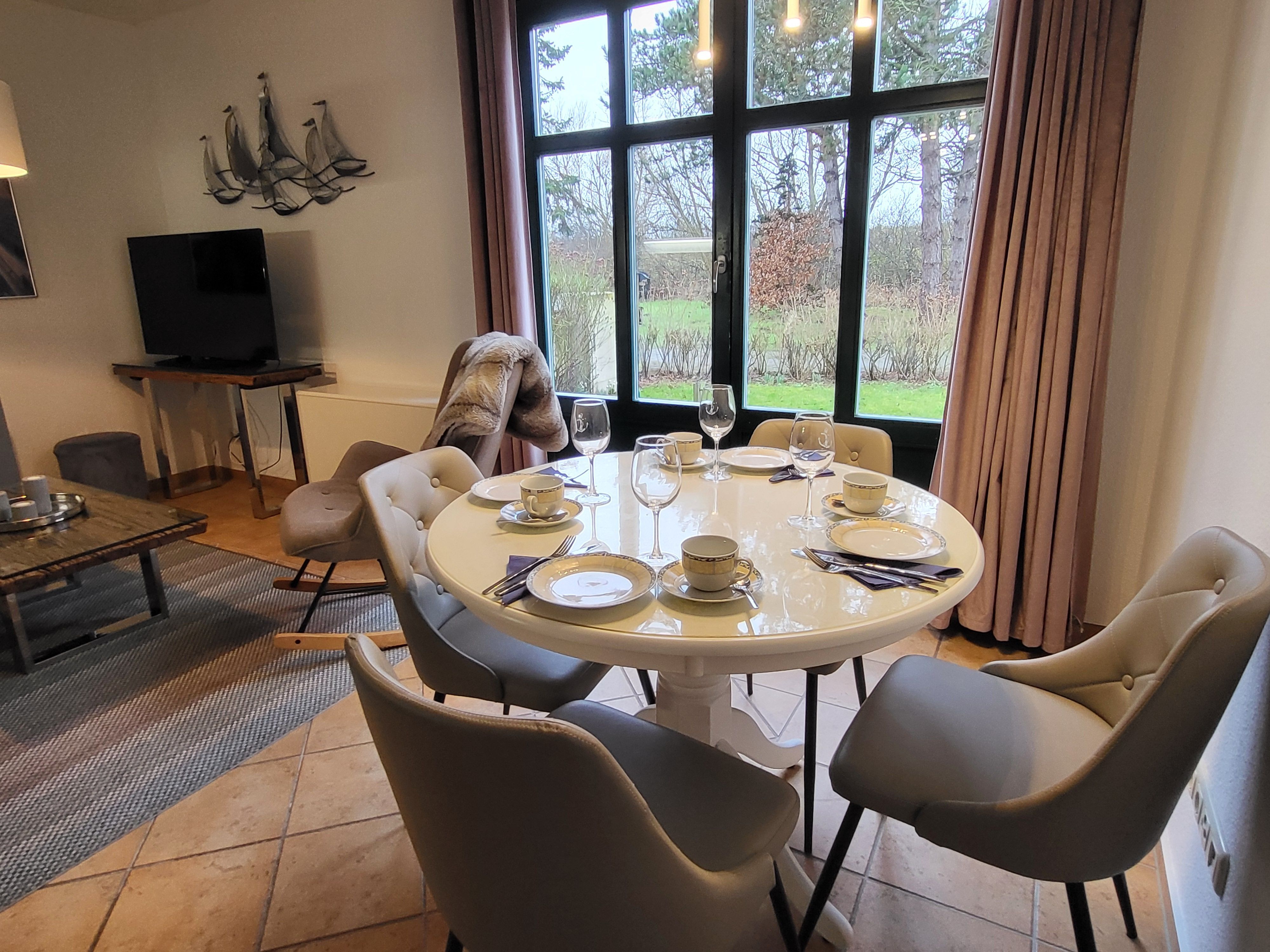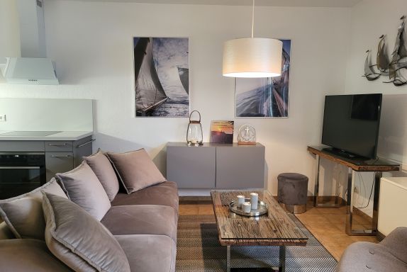 in der Ferienwohnung Strandhaus am Deich im Erdgeschoss, in einer Doppelhaushälfte direkt hinter dem Deich mit Strandzugang.