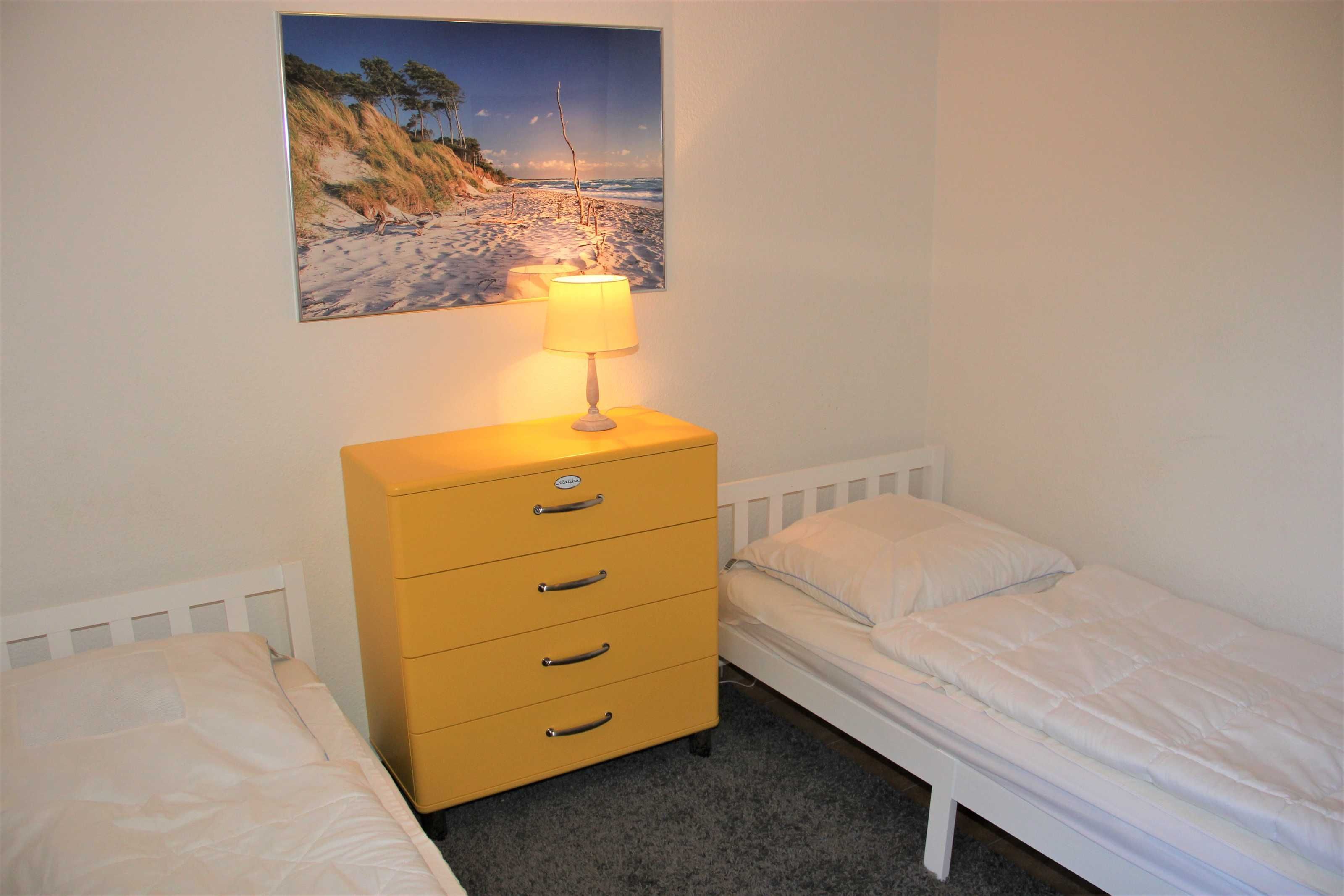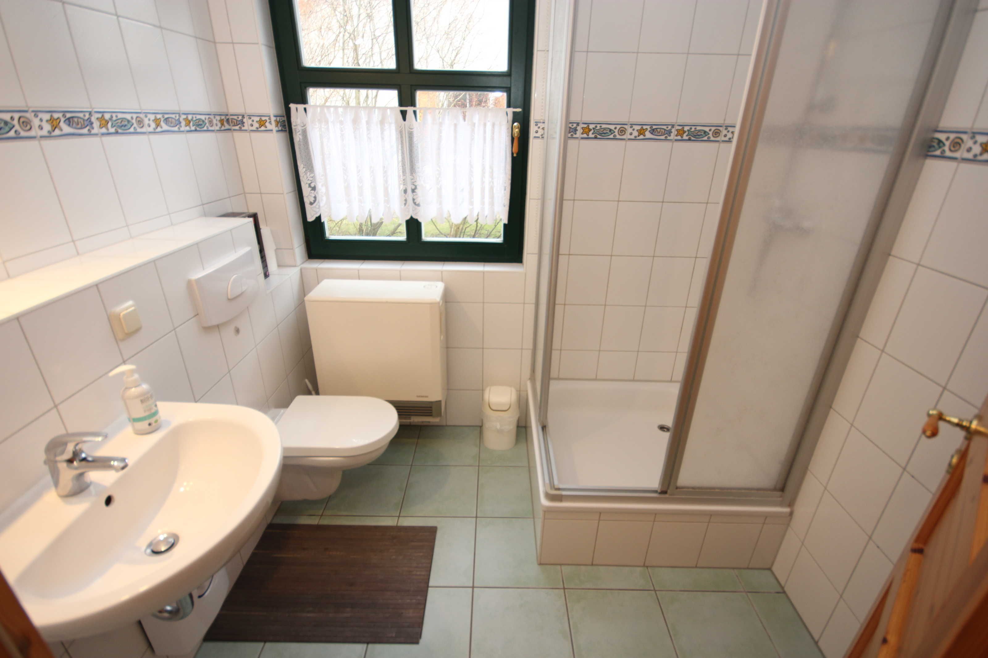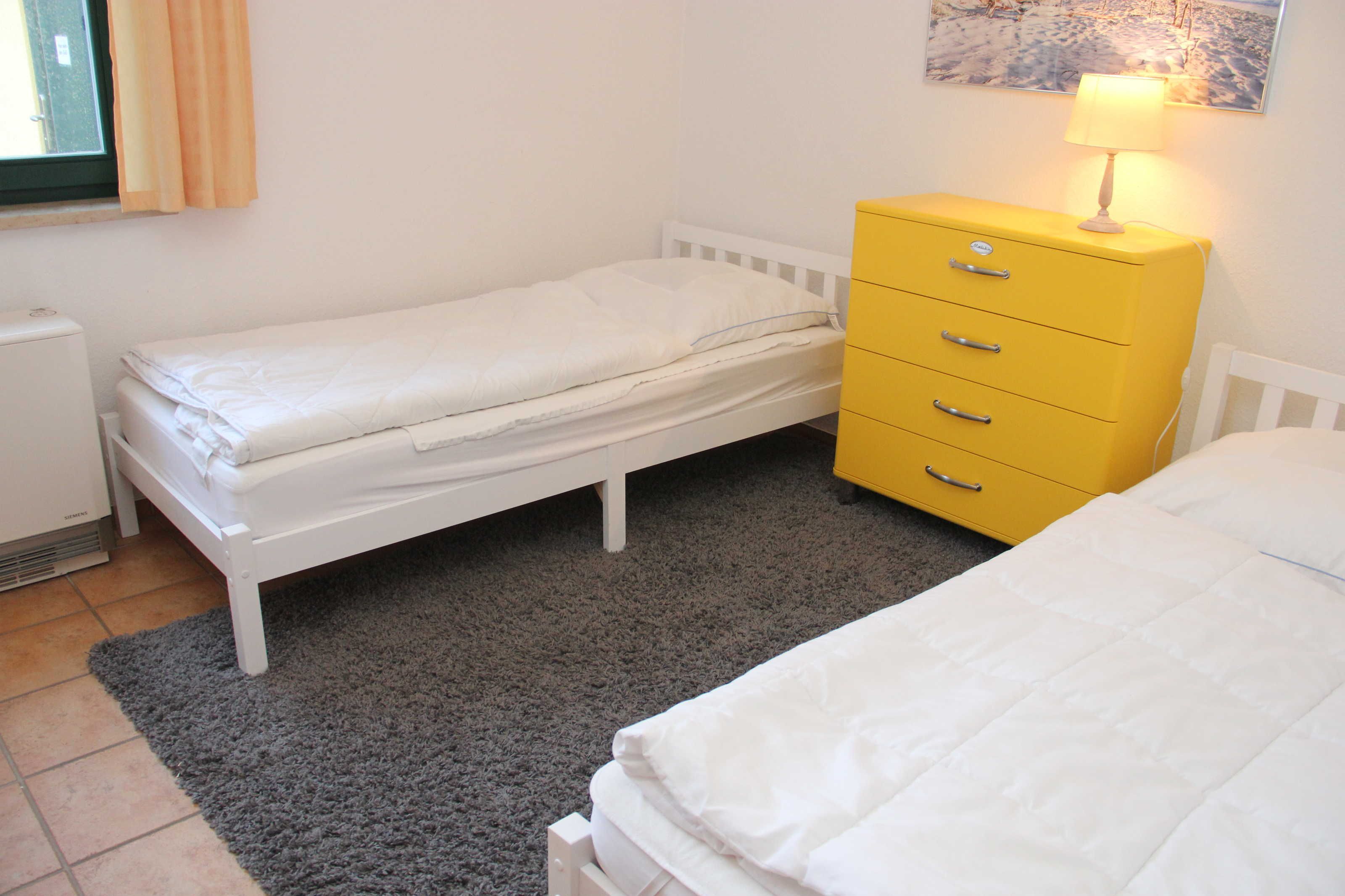 Das Wohnzimmer hat einen Kamin, das Kaminholz ist von den Gästen mitzubringen. Alle Wohnungen sind Nichtraucherwohnungen. In der offenen Küchenzeile befinden sich ein Backofen und Geschirrspüler, sowie umfangreiche Küchenutensilien. Für unsere kleinen Gäste können Sie Kinderreisebett und Kinderhochstuhl à 10,00 € /pro Woche dazubuchen. Für die nächtliche Ruhe stehen Ihnen 1 Schlafzimmern mit einem Doppelbett 1,80 x 2,00 m (getrennte Matratze) und ein Schlafzimmer mit 2 Einzelbetten (0,90 x 2,00 m) zur Verfügung, die Bettwäsche und Handtücher können bei der Zimmervermittlung dazu gebucht werden - ein Paket 19,50 € (1 Badetuch, 1 Handtuch, 1 Kopfkissen, 1 Bezug und 1 Spannbettlaken). Ein WLAN Gästezugang steht Ihnen während Ihres Aufenthaltes zur Verfügung. Zum gemütlichen Verweilen lädt die Terrasse mit Gartenmöbel ein. Ein Parkplatz befindet sich auf dem Grundstück. Haustiere sind herzlich willkommen.