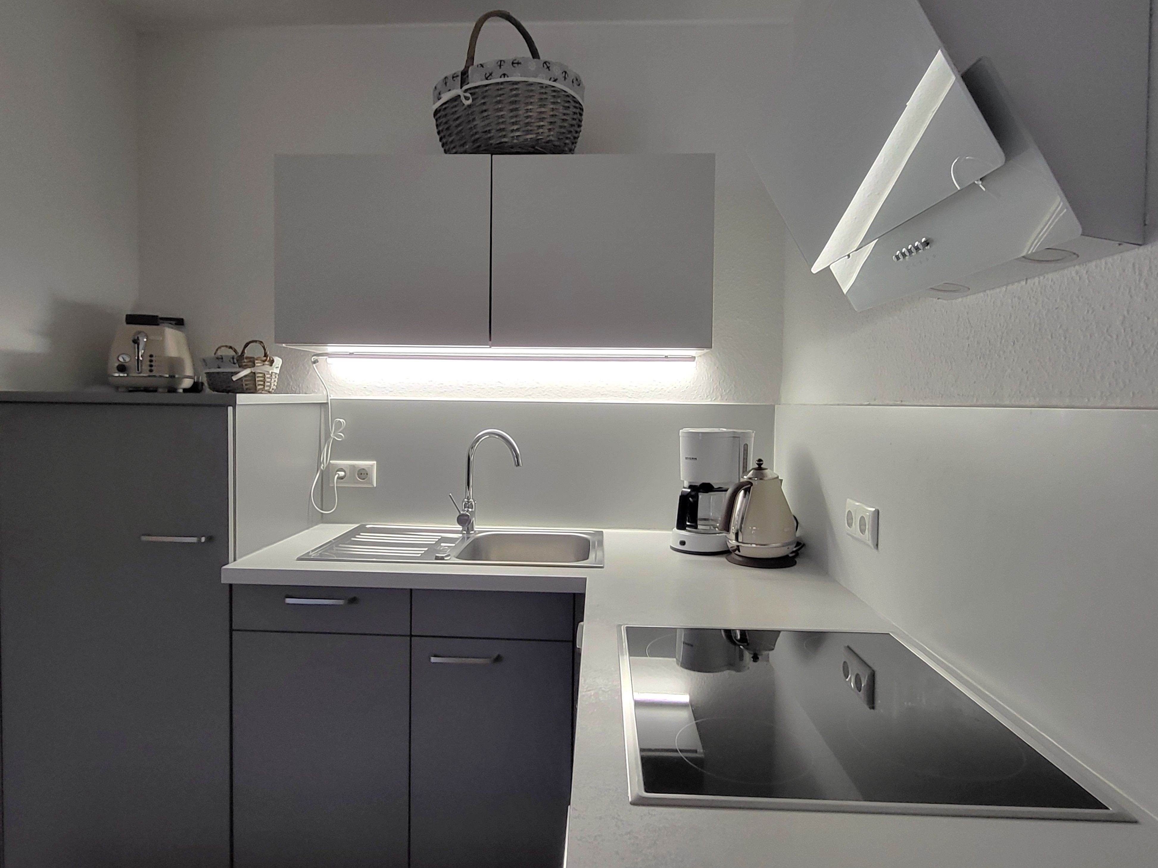 Gefrierfach im Kühlschrank, Geschirrspüler, Kaffeemaschine, Wasserkocher, Spüle, Toaster, Kamin, Warmwasser, separater Eingang