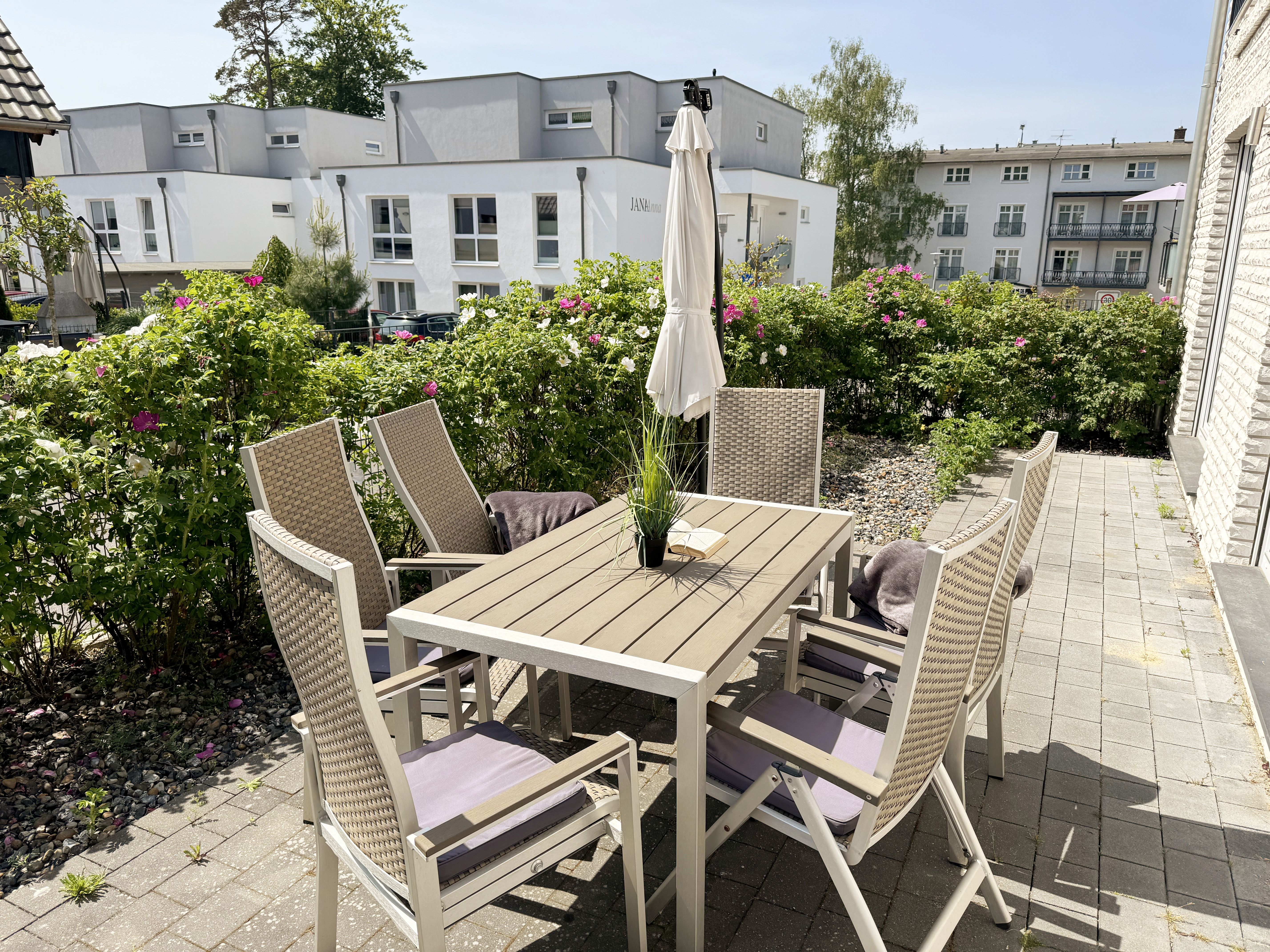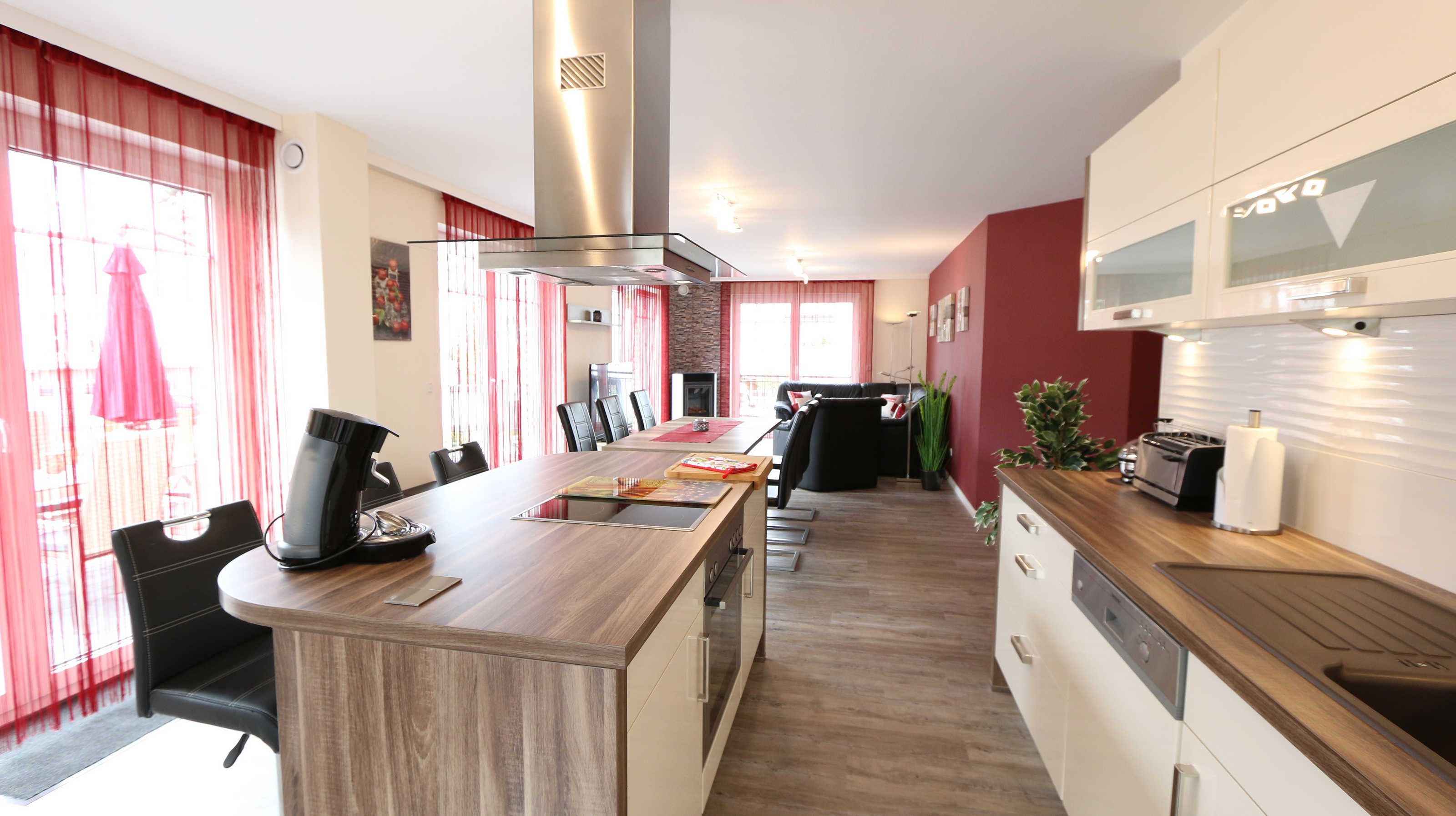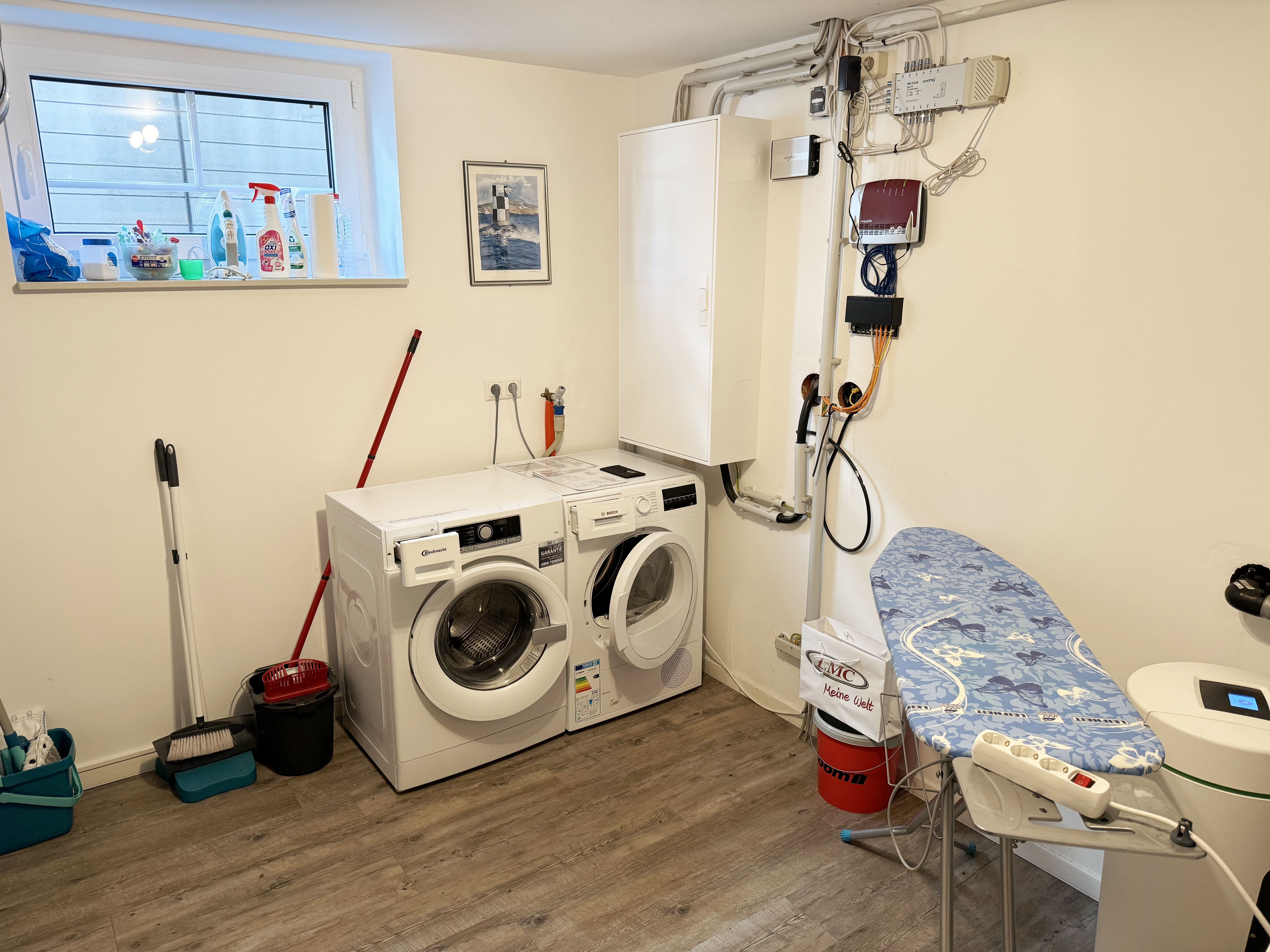 Die komfortabel eingerichtete Ferienwohnung 1 in der Villa Gina mit ca. 108 m² bietet Ihnen ausreichend Platz für 2 bis 6 Erwachsene + 1 Kleinkind bis 3 Jahre im Kinderreisebett. Bereits in der großzügigen Diele erwarten Sie 2 Garderoben. Anschließend kommen Sie in den lichtdurchfluteten Wohn-/Essbereich mit großen bodentiefen Fensterelementen mit einer perfekt geplanten Markenküche. Mit der Kücheninsel mit angrenzendem Tresen und Barhockern werden Sie Freude am gemeinsamen Kochen mit Familie und Freunden haben. Zur Ausstattung gehören ein großer Kühlschrank, Gefrierschrank, Geschirrspüler, Backofen, Ceranfeld sowie eine Mikrowelle. Zu den weiteren kleinen und großen Küchenhelfern gehören Kaffeemaschine, Senseo-Kaffeeautomat, Wasserkocher, Eierkocher, Toaster, elektrische Zitruspresse, Standmixer, Hand- und Stabmixer. Die LED-Beleuchtung an Sockeln und Tresen machen die Küche zu einem gemütlichen Aufenthaltsort. Im angrenzenden Essbereich haben 6 Personen auf bequemen Schwingstühlen ausreichend Platz, ihre Mahlzeiten zu genießen. Im Wohnbereich können Sie es sich auf der großen Ledercouch oder dem Ledersessel bequem machen. Mit einem guten Buch können Sie sich hier entspannen oder auf dem 55 Zoll Smart-TV in Full-HD-Qualität mit Sky (Auswahl von Sport, Film, Dokumentation), LED-Hintergrundbeleuchtung und Netflix Ihre Lieblingssendung anschauen. Auf dem Blu-Ray Player mit USB können Sie Ihre mitgebrachten Filme abspielen. Eine Stereoanlage mit CD, USB und Bluetooth, die auf einem großen Sideboard steht sowie WLAN runden das Entertainmentequipment ab. Die Fußbodenheizung sorgt in Kombination mit den exklusiven Designböden für ein sehr angenehmes Raumklima. Eine automatische Be- und Entlüftungsanlage sorgt zudem für einen hohen Wohnkomfort. Der elektrische Kaminofen bringt Behaglichkeit an kühleren Tagen. Die Terrasse in Südausrichtung mit Ampelschirm sowie eine überdachte Ost-Terrasse sind vom Wohnbereich zu erreichen und bieten zudem einen Kugelgrill. Falls Sie mit Ihrem vierbeinigen Freund gegen eine Gebühr anreisen, ist selbstverständlich in dem rund 47 m² großen Wohn-/Essbereich ausreichend Platz vorhanden für den mitgebrachten Schlafplatz. Elektrische Rollläden befinden sich an der Süd- und Westseite des Raumes. Ein paar Gesellschaftsspiele, Holzspielzeug für die kleinen Gäste sowie einige Bücher finden Sie ebenfalls vor. Kindersicherungen an den zugänglichen Steckdosen sind vorhanden. Für Ihren erholsamen Schlaf stehen Ihnen insgesamt 3 komfortable Schlafzimmer zur Verfügung. In 2 Schlafzimmern finden Sie jeweils ein Boxspringbett mit Taschenfederkernmatratzen und Komfort-Topper in der Größe 1,60m x 2,00m, Nachttischablagen mit dimmbarer Beleuchtung und USB zum Aufladen von Handys oder E-Books, Radiowecker, einen Kleiderschrank sowie einen 32 Zoll-Flachbild-TV mit Smart-TV. Beide Schlafzimmer haben elektrische Rollläden. Im 3. Schlafzimmer befindet sich ein Boxspring-Einzelbett (1,00m x 2,00m) sowie eine bequeme Schlafcouch (1,50m x 2,00m), die tagsüber als Sofa dient. Abgerundet wird das Schlafzimmer mit einem 32 Zoll-Flachbild-TV mit Smart-TV sowie einem Kleiderschrank und 2 Nachttischablagen mit dimmbarer Beleuchtung sowie Radiowecker. Verdunklungsvorhänge sorgen für einen ungestörten Schlaf. Die beiden hochwertigen Tageslicht-Bäder mit Fußbodenheizung sorgen dafür, dass es zu keinem morgendlichen Stau kommt. Das eine Badezimmer ist ausgestattet mit einer bodentiefen Echtglasdusche, Badewanne, 2 Waschplätzen und Spiegelschrank, WC, Kosmetikspiegel, Handtuchtrockner und Fön. Das zweite Bad hat eine Walk-In-Dusche, 1 Waschtisch und Spiegelschrank, WC sowie ebenfalls Handtuchtrockner und Fön. Zusätzlich gibt es in der Wohnung noch einen Abstellraum. Hier befinden sich ein Hochstuhl für die kleinen Gäste sowie Staubsauger und Reinigungsutensilien. Im Untergeschoss befindet sich ein Wirtschaftsraum mit Waschmaschine und Trockner, die kostenfrei genutzt werden können. Ein Wäschetrockner, Bügelbrett und ein Bügeleisen stehen Ihnen ebenfalls zur Verfügung. Des Weiteren finden Sie hier die gemeinschaftliche Sauna mit einer separaten Walk-In-Dusche mit Waschbecken und WC sowie einen angrenzenden Ruheraum mit Liegen und Relax-Stühlen, außerdem ein elektrischer Wandkamin und eine atemberaubende Fototapete. Lassen Sie sich überraschen. Im Außenbereich finden Sie jeweils einen Parkplatz (Nr.01) sowie einen abschließbaren Fahrradschuppen mit Steckdose zum Aufladen für Ihr E-Bike für jede Wohnung. Darin befinden sich auch die kostenlos zur Verfügung gestellten Bollerwagen für Ihre Strandutensilien. Die Erstausstattung eines Wäschepaketes (komplette Bettwäsche, 1 Duschhandtuch, 1 kleines Handtuch) können Sie bis 14 Tage vor Anreise gegen einen Aufpreis dazu buchen oder durch eigene ergänzen. Ab 2 gebuchten Paketen erhalten Sie einmalig 1 Geschirrhandtuch und 1 Duschvorleger hinzu. Wir wünschen Ihnen einen erholsamen und erlebnisreichen Urlaub!