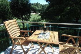 Vom Essbereich geht es direkt auf den kleinen Balkon mit 2 Gartenstühlen und Tisch (und weitere 2 einfache Klappstühle sind vorhanden).