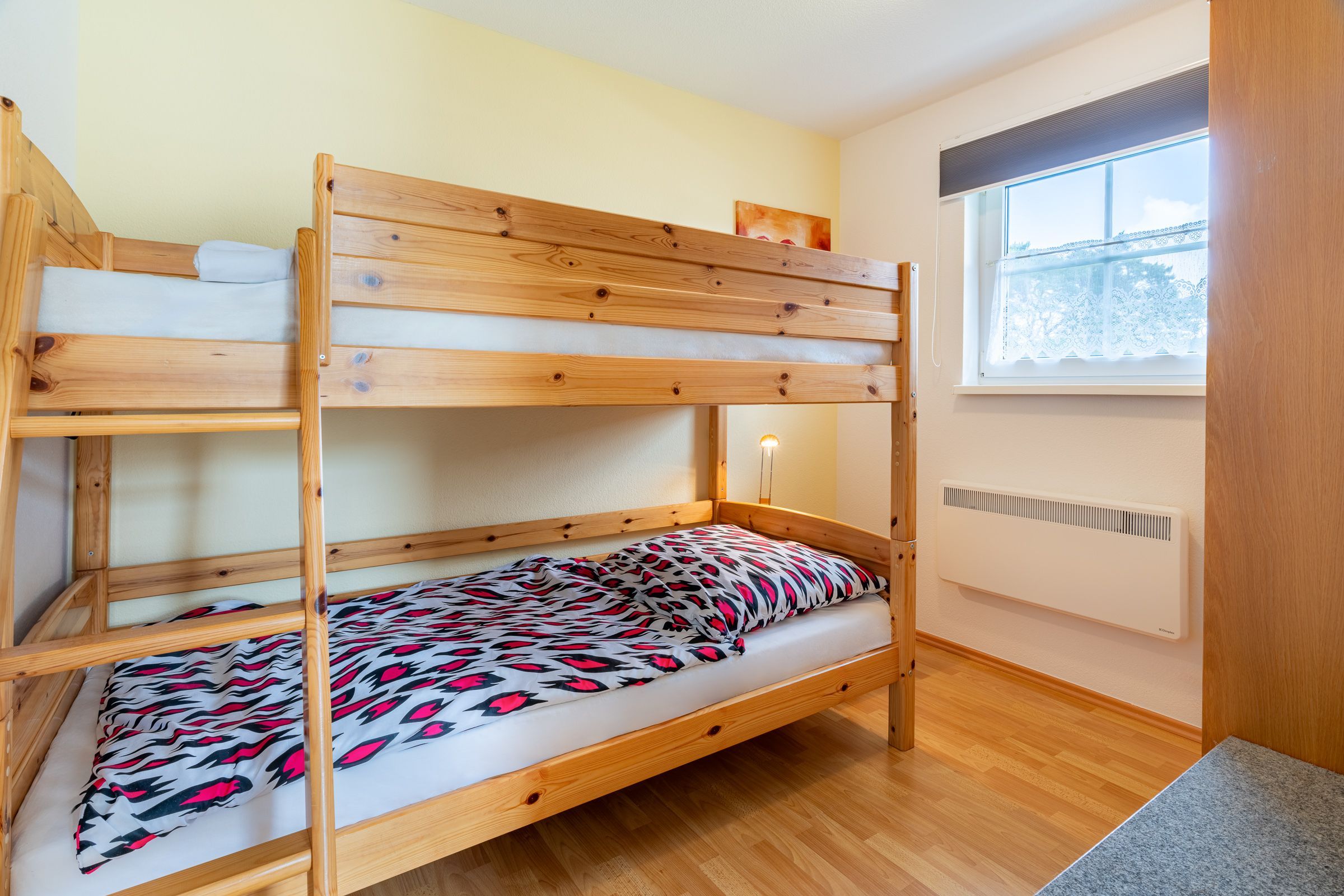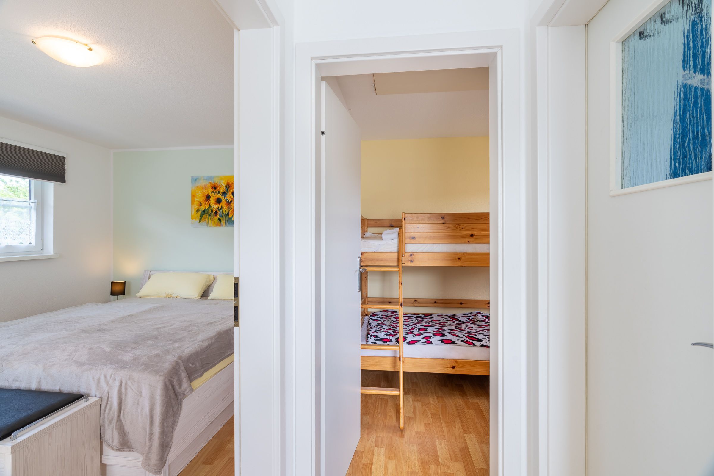 Das Ferienhaus verfügt über ein Wohnzimmer mit offenen Küchen- und Essbereich, ein Duschbad, sowie einen Abstellraum im Erdgeschoss. Im Obergeschoss befinden sich zwei Schlafzimmer und eine Gästetoilette.