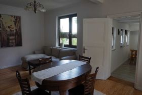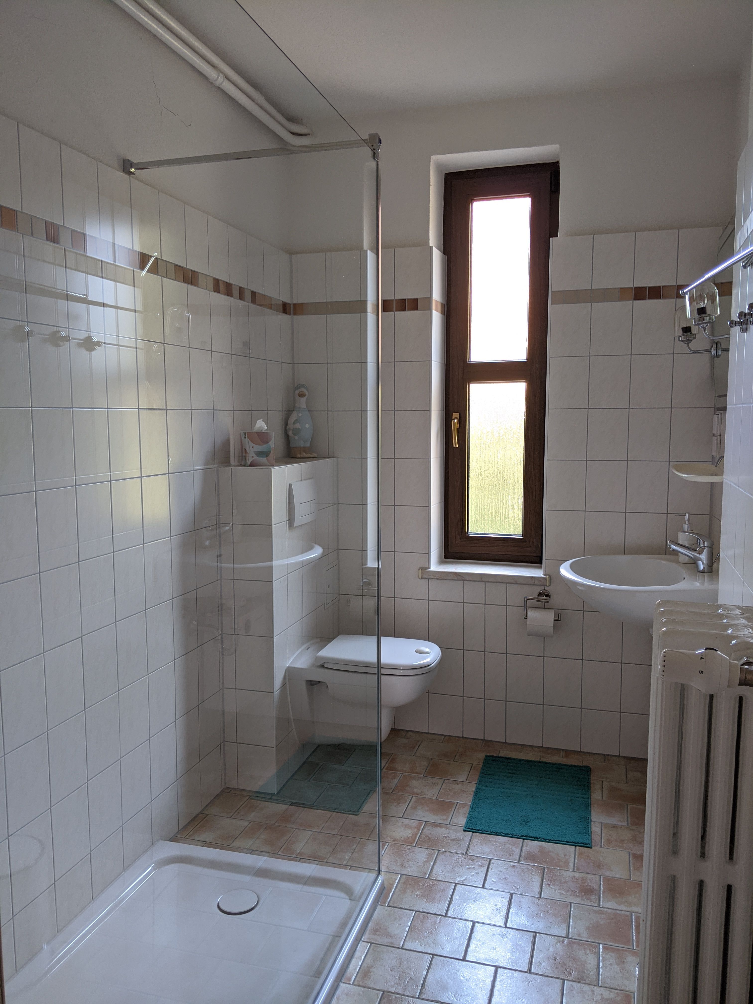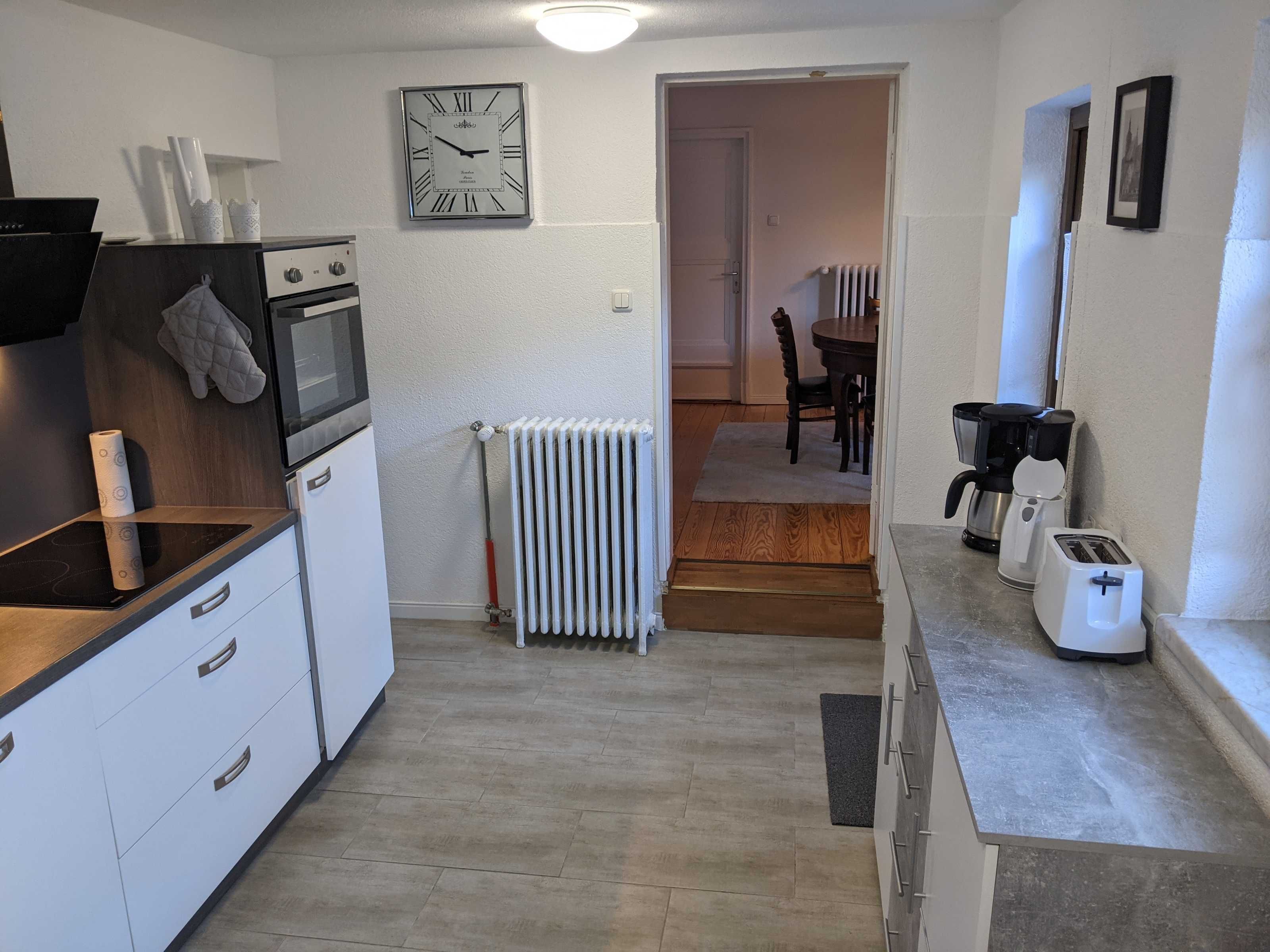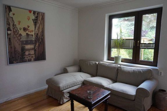Unsere 2017 neu gestaltete Ferienwohnung befindet sich im Erdgeschoss einer Doppelhaushälfte. Das Obergeschoss ist unbewohnt, sodass Sie Ihre Zeit ungestört genießen können. Die Ferienwohnung wurde hochwertig und mit viel Liebe zum Detail für unsere Feriengäste eingerichtet und bietet Ihnen alle Annehmlichkeiten für einen entspannten Aufenthalt. Das separate Schlafzimmer ist mit einem großen Boxspringbett ausgestattet. Im Nebenbereich des Wohnzimmers ist eine Schlafcouch aufgebaut und bietet so zusätzlichen Schlafraum für zwei weitere Gäste. An die voll eingerichtete Küche mit kleinem Esstisch schließt sich die neu errichtete Terrasse mit entsprechender Sitzmöglichkeit für laue Sommerabende an. Das gemütliche Wohnzimmer mit dem großen Flachbildschirm lädt zu gemeinsamen Abenden der Entspannung ein. Wenn Sie mit der Familie anreisen, bietet unser großer Esstisch im Wohnzimmer einen Ort für gemeinsame Aktivitäten.