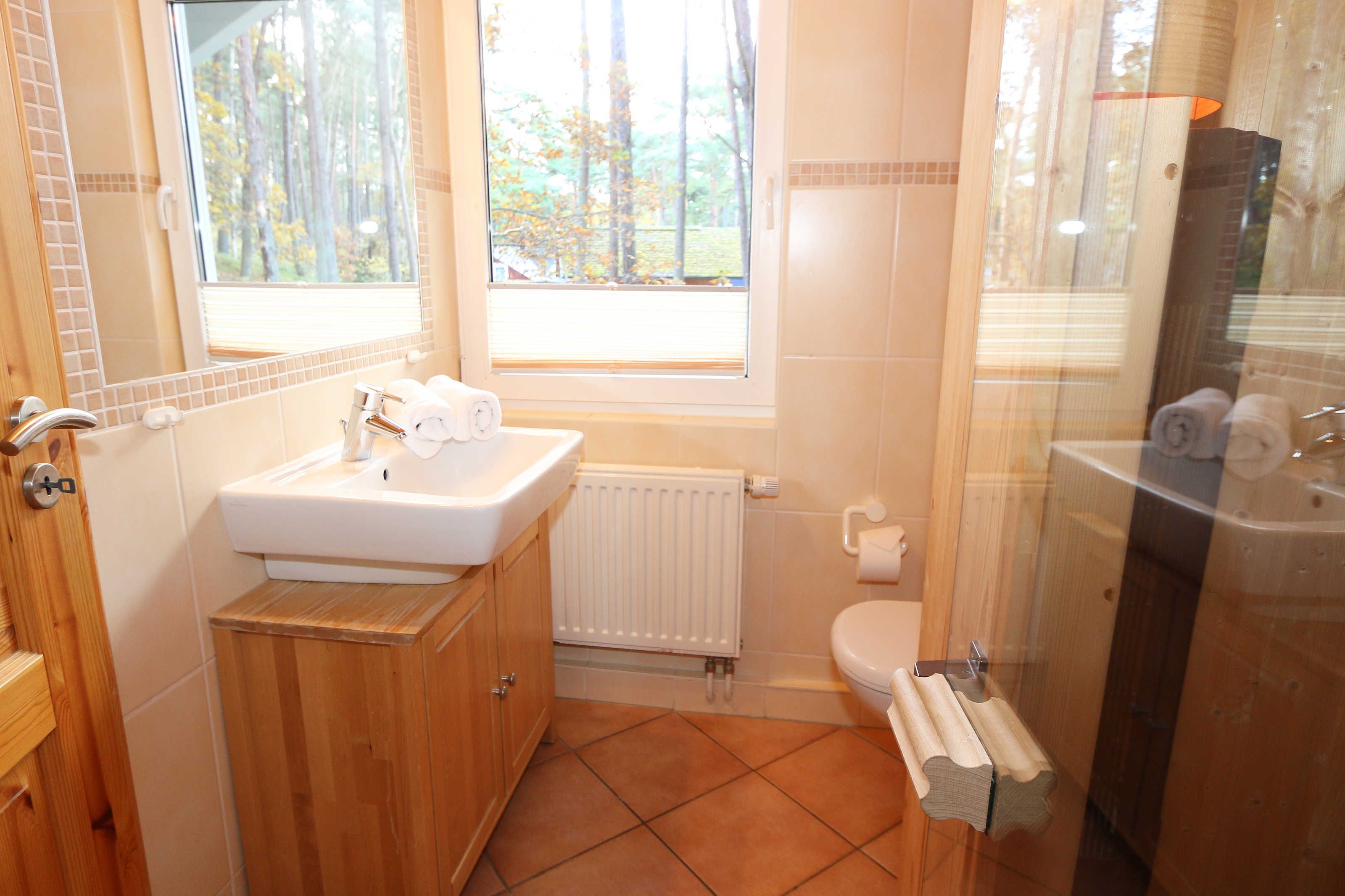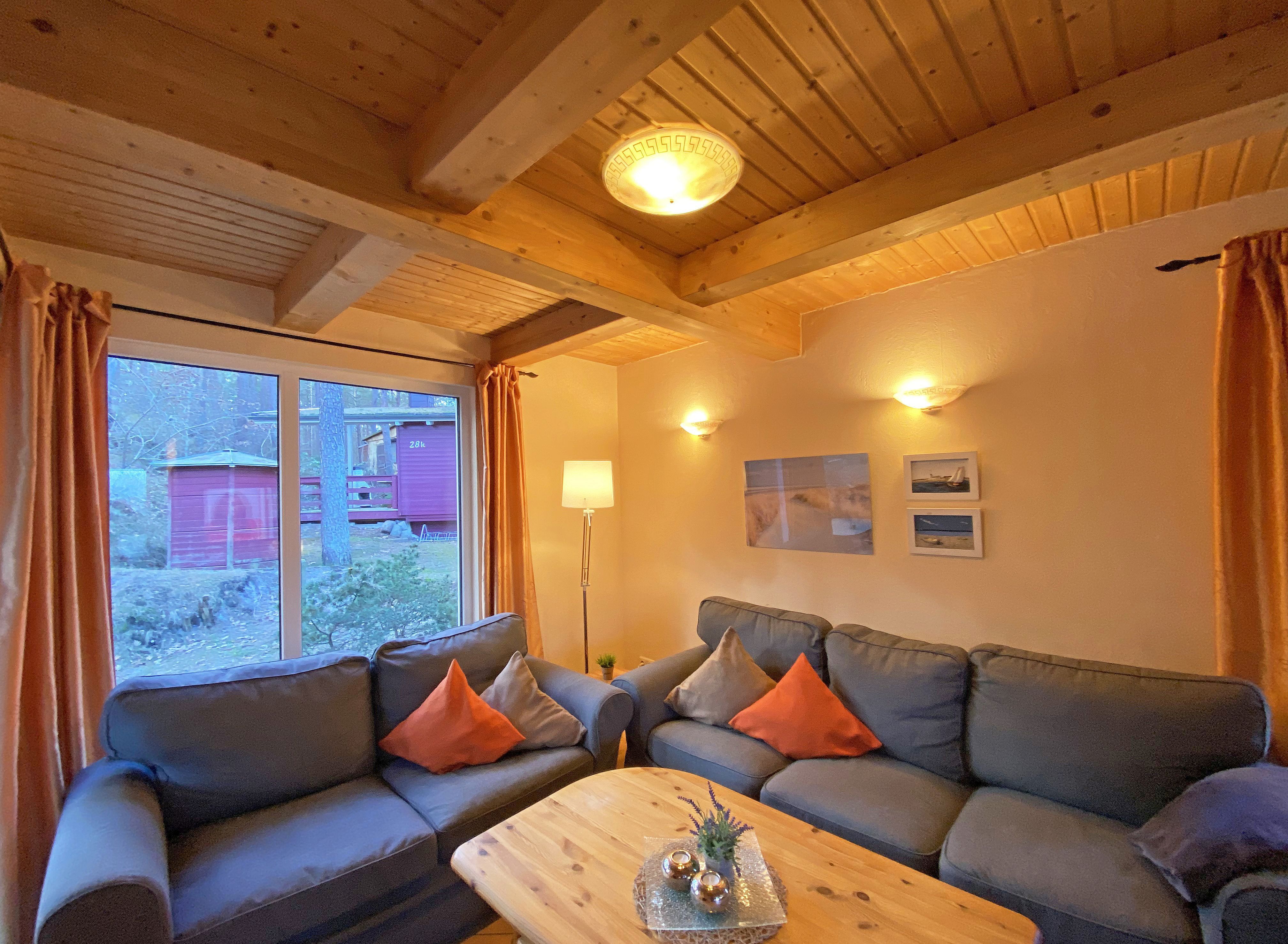 Herzlich Willkommen in unserem Strandhaus im schönen Ostseebad Baabe auf Rügen! Unser 70 m² großes alleinstehendes Standhaus im Schwedenstil (Nichtraucher, 2 bis 6 Erwachsene + 1 Kleinkind bis 3 Jahre im Kinderreisebett) liegt nah am Strand, direkt im Dünenwald von Baabe. Das Holzhaus ist gemütlich mit viel hellem Naturholz eingerichtet und gleichzeitig modern, komfortabel und voll ausgestattet. Dazu zählen wir sowohl die moderne Komfortküche mit Ceran-Herd, Backofen, Mikrowelle, Geschirrspüler, Waschmaschine (inklusive), Kühlschrank mit Eisfach, Getränkekühlschrank, Kaffeemaschine, Wasserkocher, Toaster, Reinigungsutensilien und mehr als auch den Wohnkomfort einer Fußbodenheizung, der LCD-Fernseher in HD-Qualität, Satelliten-Anschluss für hohe Programmvielfalt und ein DVD-Player mit Radio. Ein gemütlicher großer Wohnbereich und Kamin (Kaminholz inklusive) mit Sichtfenster rundet unsere Einrichtung ab. Und damit Sie Ihren Urlaub bei uns ganz entspannt genießen können, sind alle Kosten für Strom, Wasser und Heizung sowie das WLAN bereits im Preis inklusive! Das Haus verfügt über insgesamt drei Schlafzimmer im Obergeschoss. Zwei Schlafzimmer sind mit Doppelbett (2 x Boxspringbetten je 0,80 m x 2,00 m zusammengestellt) und Kleiderschrank ausgestattet und bieten ausreichend Platz für 1x zusätzliches Kinderreisebett (inklusive Matratze). Das dritte Schlafzimmer verfügt über zwei Boxspringbetten (je 0,80 m x 2,00 m) die man auch zusammenstellen kann und Kleiderschrank Im Erd- sowie im Obergeschoss befinden sich je ein Tageslicht-Bad mit großem Spiegel, WC, Dusche und Haartrockner. Zusätzlich im Bad (OG) befindet sich noch ein Thermium (Infrarotsauna). Am Wohn-/ Essbereich schließt sich die überdachte Terrasse (Süd/Ost) mit Tisch, Stühlen und Gartengrill an. Von dort blicken Sie direkt zum Dünenwald, wo Sie die Vielfalt der Natur noch mehr genießen können. Ein eigener PKW-Stellplatz Nr. 28l gehört zum Standhaus. Haben Sie 1 Haustier, das Sie mitbringen möchten? Gerne ist dies gegen eine Gebühr möglich. Sind Sie vor Ort, so haben wir für Sie weitere zusätzliche Angebote (gegen Gebühr) direkt im Dünenpark. Sie können z.B. in der Sauna in unserem Wellnessbereich im Souterrain unseres Backshops relaxen. In unserem Backshop selbst erhalten Sie In der Saison täglich frisch: Brötchen, Lebensmittel, Tageszeitungen, Frühstück, Kaffee & Kuchen und mehr (Schließzeiten immer Anfang Januar - 1 Woche vor Ostern, Weihnachten und Winterferien nach Bedarf). Die Erstausstattung eines Wäschepaketes (komplette Bettwäsche, 1 Duschhandtuch, 2 kleine Handtücher) können Sie bis 14 Tage vor Anreise gegen einen Aufpreis dazu buchen oder durch eigene ergänzen. Ab 2 gebuchten Paketen erhalten Sie einmalig 1 Geschirrhandtuch und 1 Duschvorleger hinzu. Wir freuen uns auf Ihren Besuch!