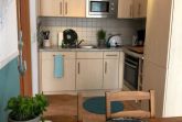 Die Ferienwohnung verfügt über ein Wohnzimmer mit offenen Küchen- und Essbereich, ein separates Schlafzimmer und ein Duschbad.