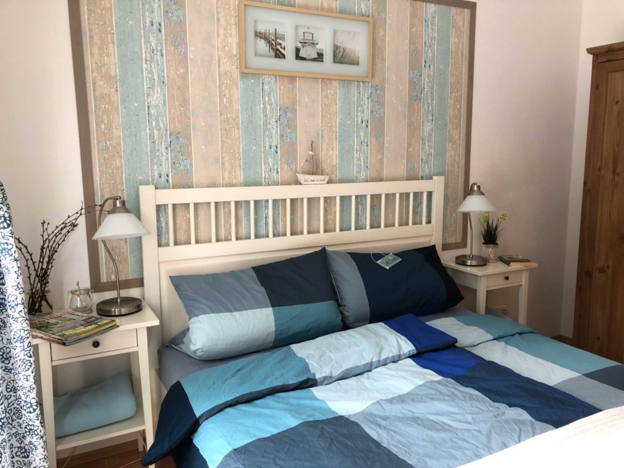 - Schlafzimmer mit Doppelbett und Kleiderschrank