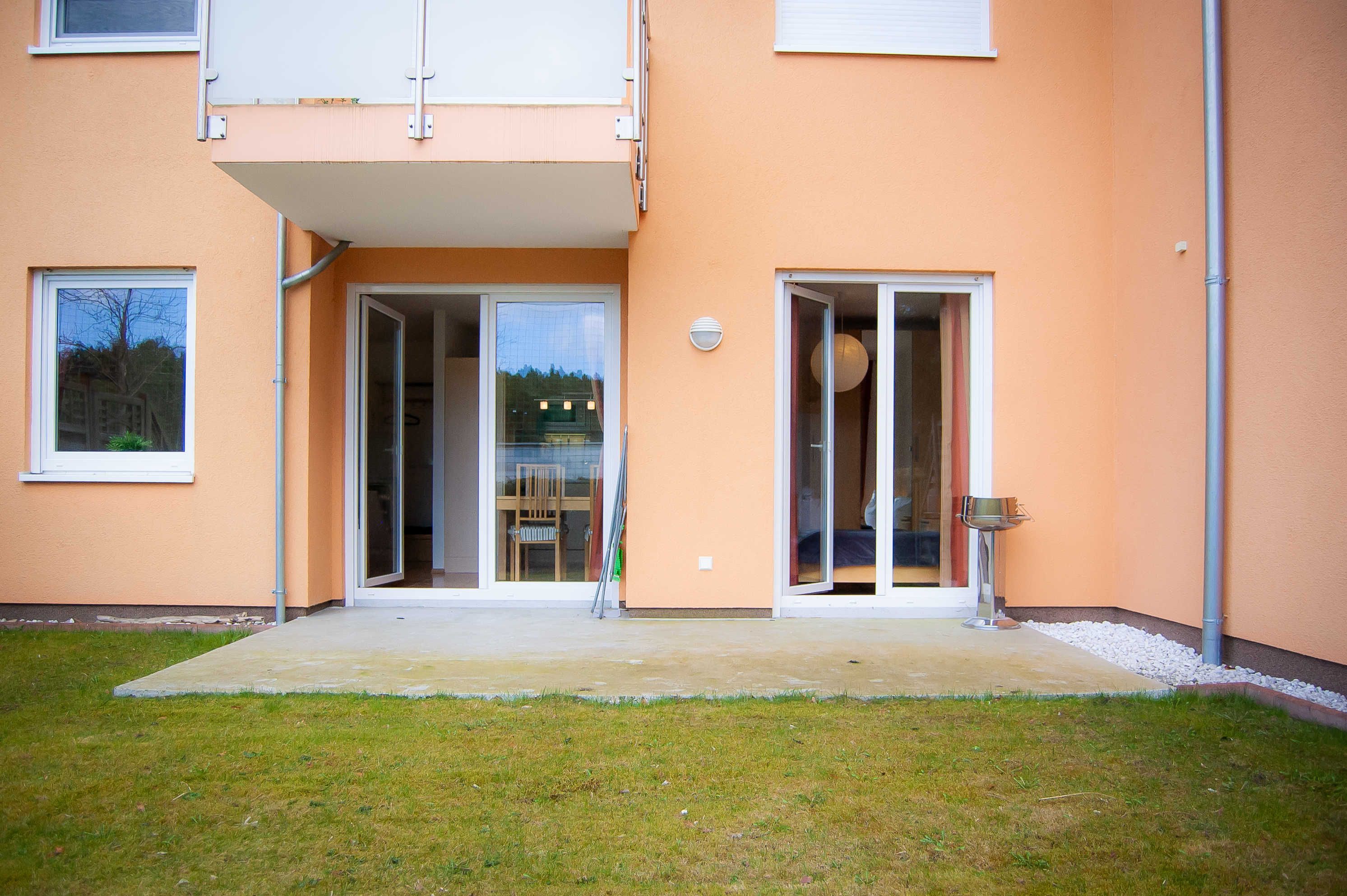 Die möblierte Terrasse lädt zum Verweilen ein.