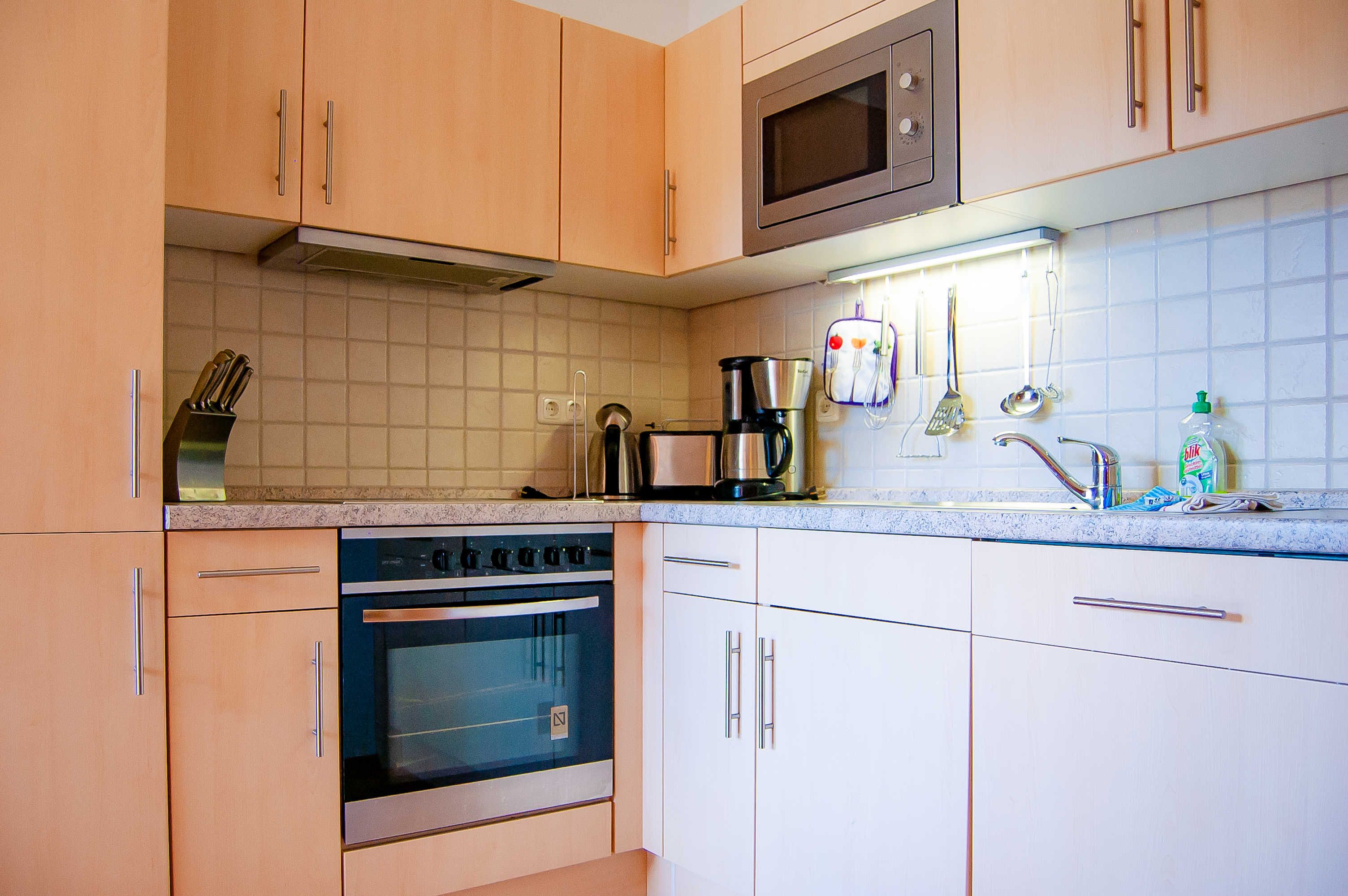 Die komplett ausgestattete moderne Küche mit Herd, Ofen, Geschirrspüler, Kühl- und Gefrierschrank, Kaffeemaschine, Toaster, Wasserkocher und Kücheninventar bietet ausreichend Möglichkeit zum Kochen. In allen Zimmern ist Fußbodenheizung vorhanden.