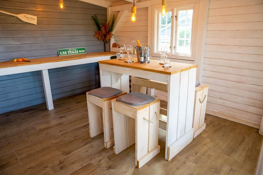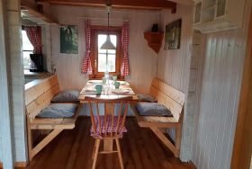 Die offenen Balken und Blockbohlen im Inneren des Hauses verleihen dem Haus einen besonderen Charme und schaffen Behaglichkeit zum Wohlfühlen. Direkt vor der Tür befindet sich eine großzügige Holzterrasse zum Garten, die dazu einlädt, in der Morgensonne zu frühstücken oder die herrlichen Urlaubsabende in gemütlicher Atmosphäre zu genießen.