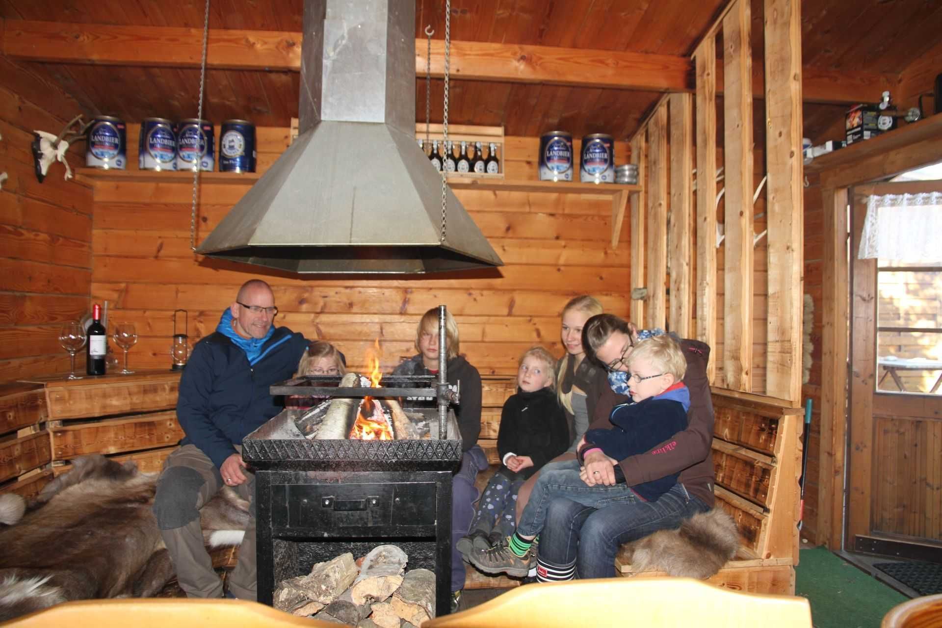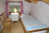 Das urige Blockbohlenhaus liegt etwas abseits in der Gartenanlage des Hofes.
