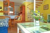 Die Maisonette Wohnung bietet im Obergeschoss Zwei Schlafzimmer. Eines ist mit einem Doppelbett (2x 0,80m x 2,00m) ausgestattet und im anderen befinden sich zwei Einzelbetten. Es gibt ein Wohn-Essbereich, eine Küche mit Tresen und ein Duschbad.