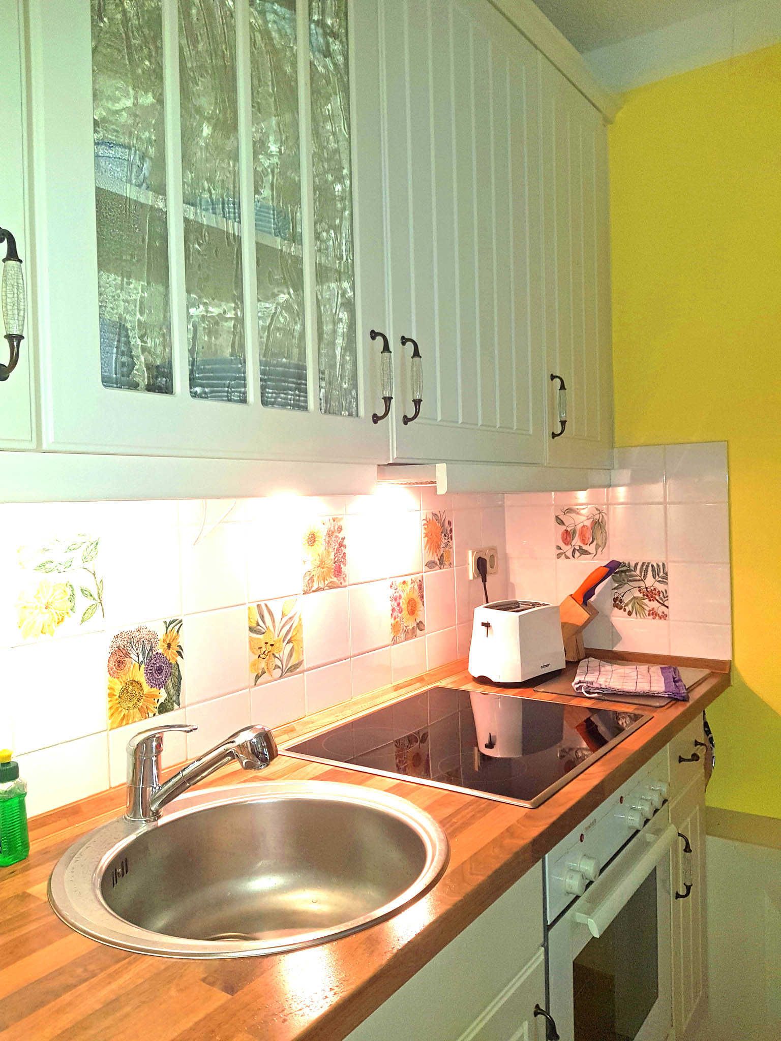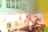 Die Wohnung misst über zwei Etagen großzügige 68 qm. Der stilvoll und individuell eingerichtete Wohn-Essbereich hat WLAN, Radio einen großen Flatscreen-TV mit DVD/Blueray-Player. Die Küche ist umfangreich ausgestattet mit Spülmaschine, Waschmaschine, Backofen, 4-Zonen-Cerankochfeld und einem praktischen Tresen.