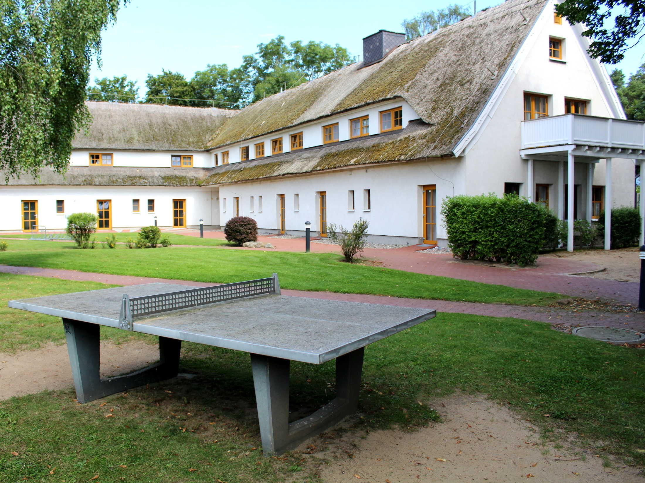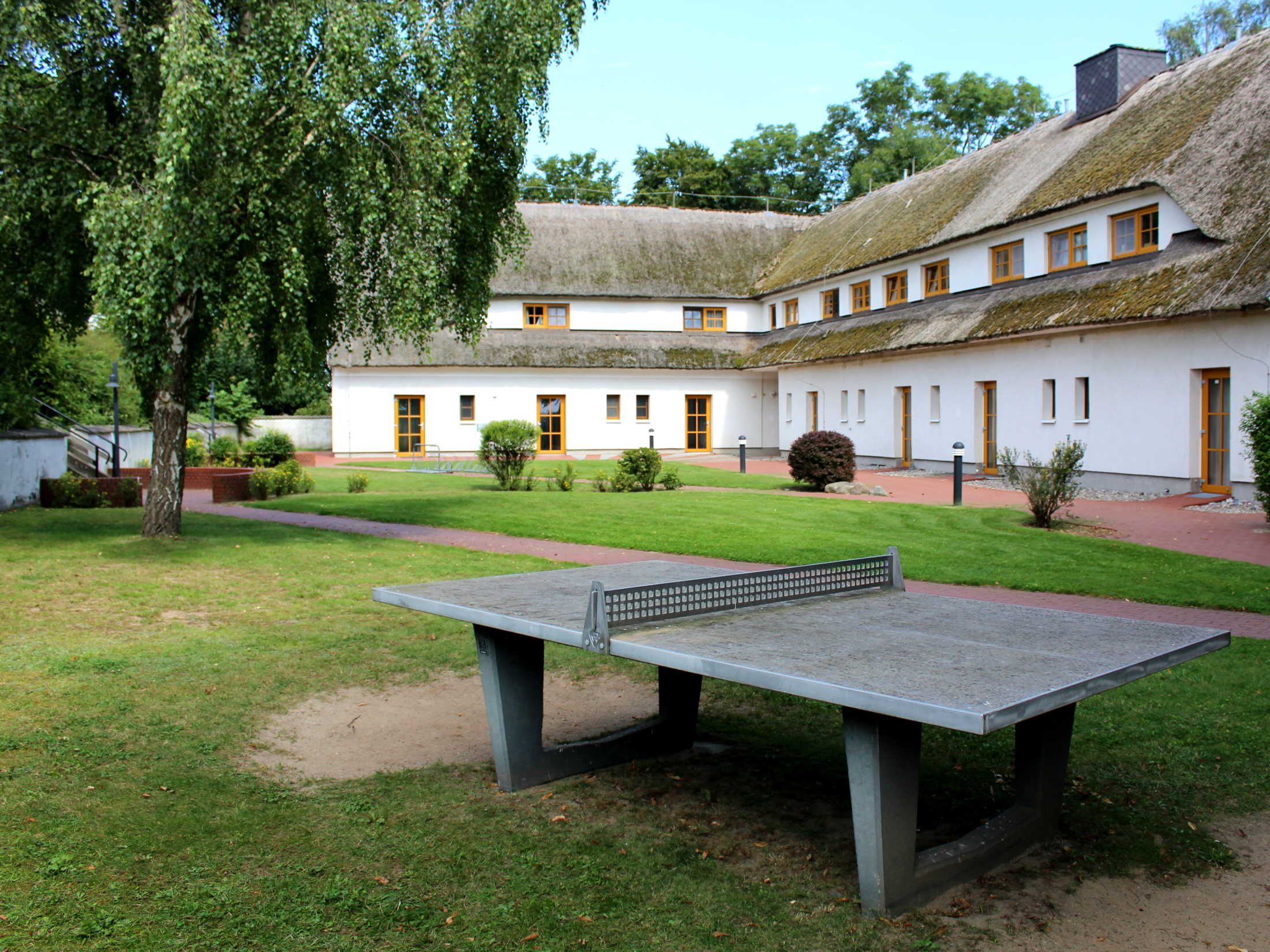 Sie liegt an der östlichen Giebelseite des Hauptgebäudes mit separatem Eingang und Zugang zum Boddenstrand auf kürzestem Weg.