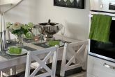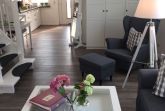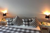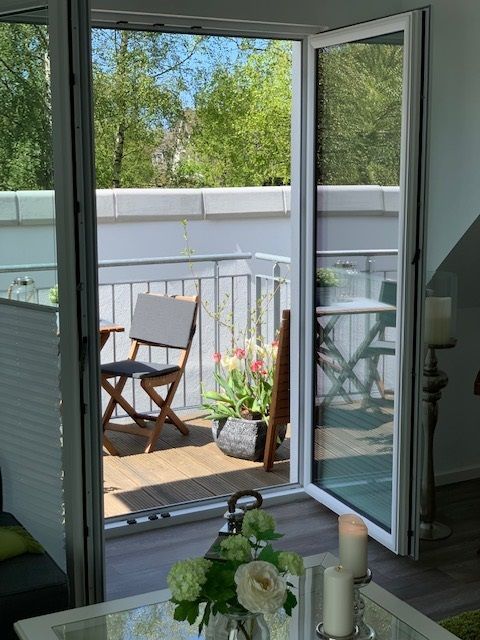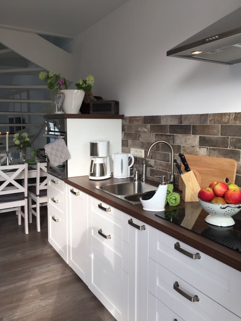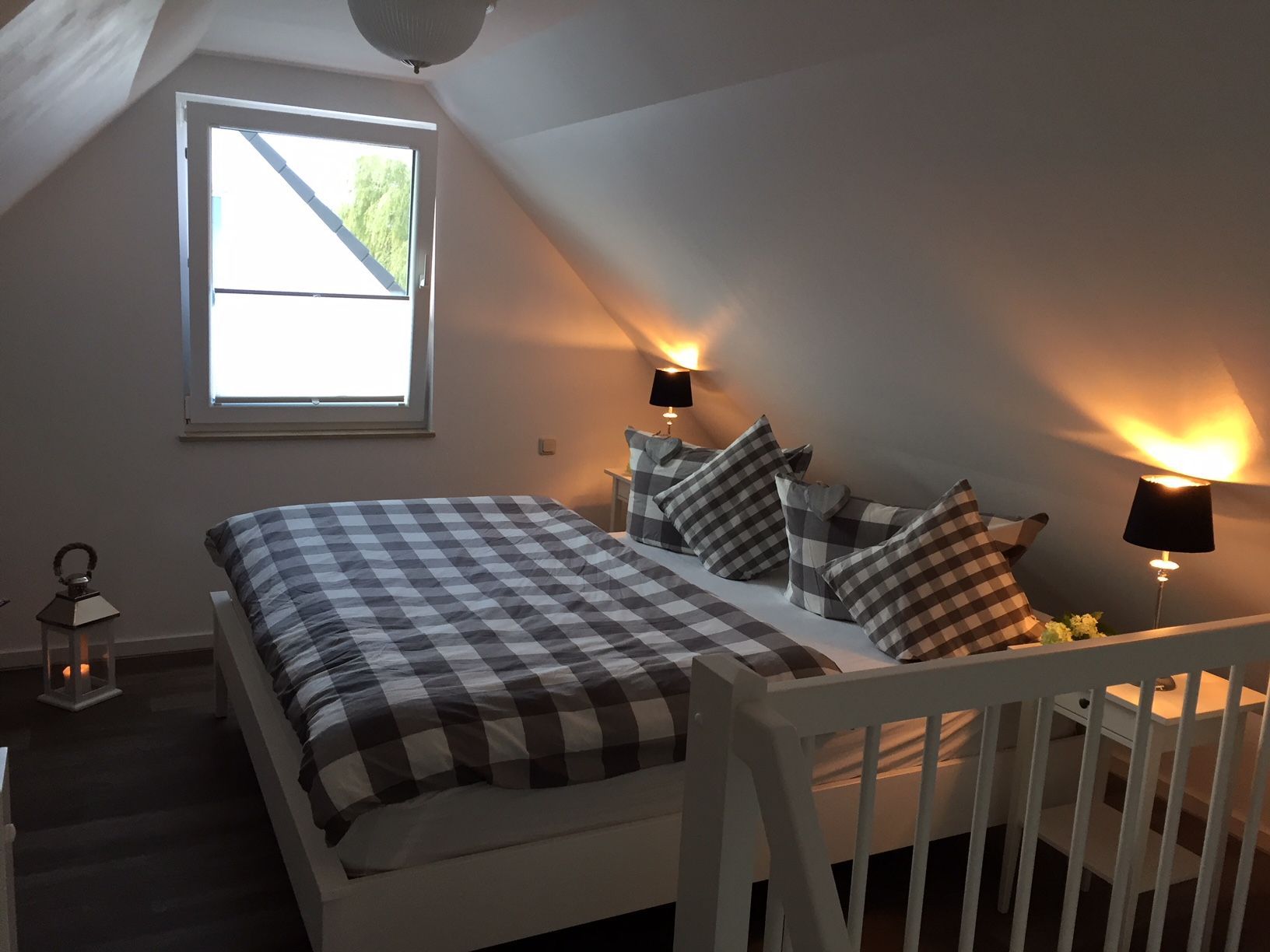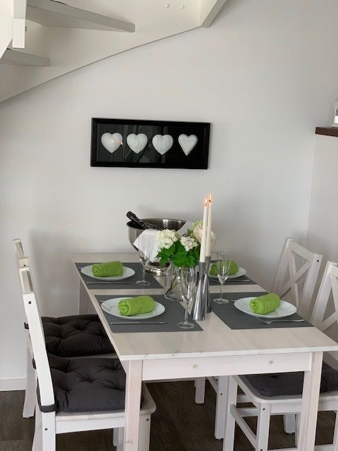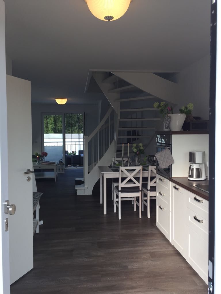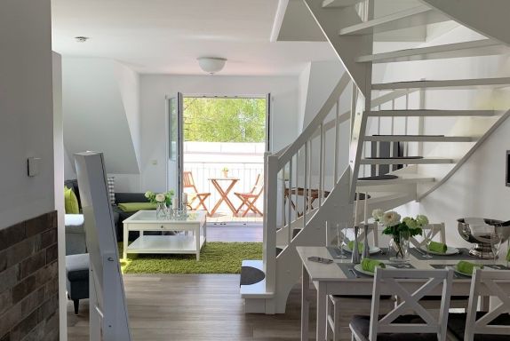 Das lichtdurchflutete Wohnzimmer mit Wohnküche ist mit einem gemütlichen Schlafsofa (Liegefläche 1,40 x 2,00 m) ausgestattet. Die große TV-Anlage mit Radio versüßt die nicht ganz so schönen Tage und eignet sich perfekt um Urlaubsbilder anzuschauen. Bei schönem Wetter lockt der West-Balkon mit entsprechenden Möbeln. Im Dachgeschoss befindet sich das Schlafzimmer mit Blick auf das Naturschutzgebiet Conventer See. Das große Doppelbett mit einer Liegefläche von 1,80 x 2,00 m ist in zwei einzelne Matratzen unterteilt. Im Zimmer befindet sich zudem eine Steckdose mit USB Aufladestation. Die offene Einbauküche ist mit Elektroherd, Backofen, Ceranfeld, Geschirrspüler, Kühlschrank mit Gefrierfach, Kaffeemaschine, Wasserkocher, Toaster und Geschirr ausgestattet. Die Wohnung kann von bis zu vier Personen gemietet werden. Das kleine Bad besticht mit ebenerdiger Dusche, geräumigem Waschtisch und Föhn.