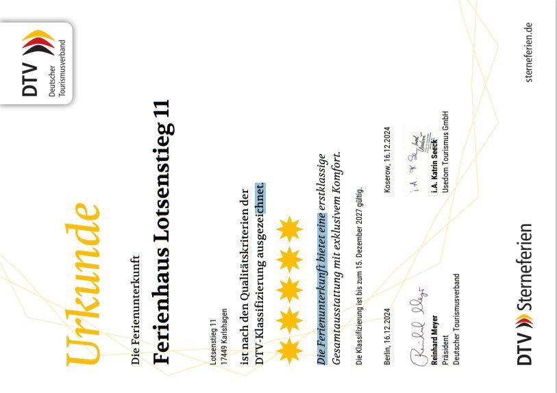 Das Strandhaus wurde vom Deutschen Tourismusverband mit 5 Sternen ausgezeichnet