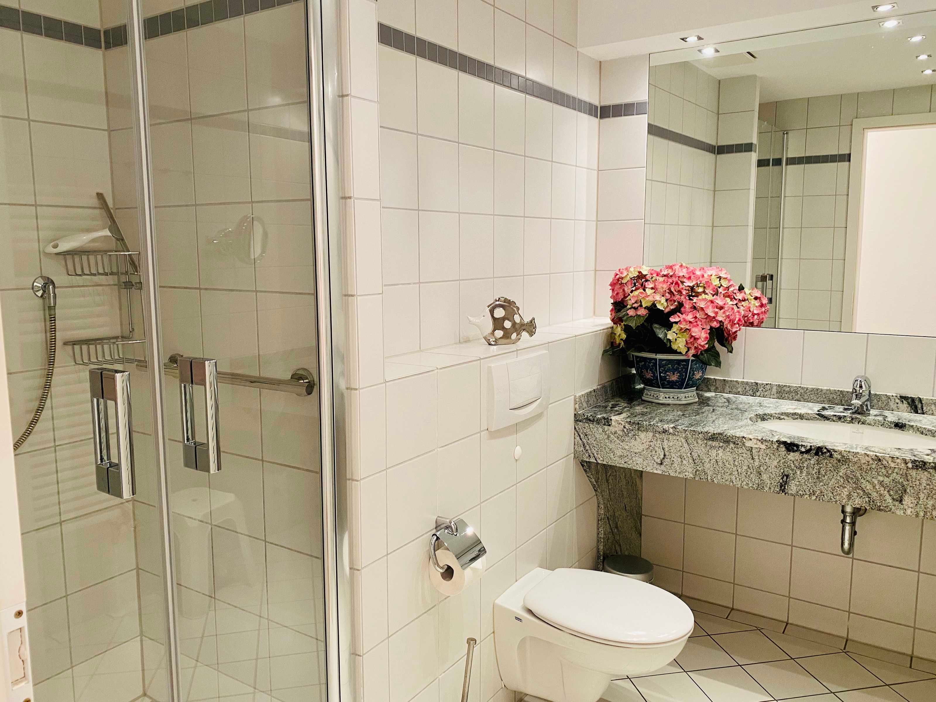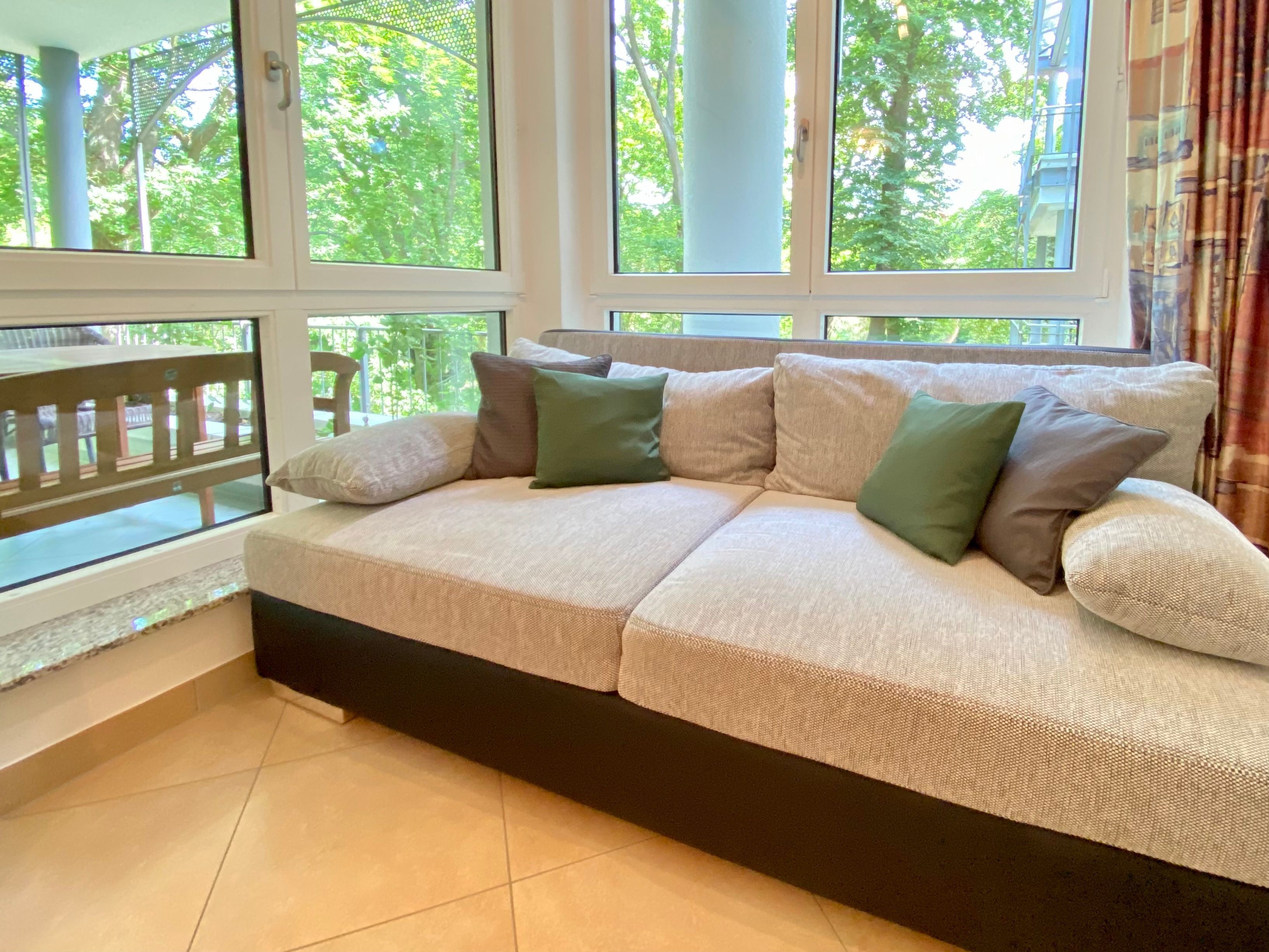Die Ferienwohnung 4 ist ein großzügiges Appartement, das der ganzen Familie viel Freiraum lässt. Die kluge Aufteilung der Ferienwohnung in zwei Bäder (Dusche und Wanne), zwei Schlafzimmer mit Doppelbetten plus Schlafcouch im Wohnzimmer, zwei Balkonen, einer separaten Küche mit allem was man so braucht und dem gemütlichen Wohnraum, überzeugen auch anspruchsvolle Gäste. Die stilvolle Einrichtung ist durch Echtholzmöbel geprägt, die einen schönen Kontrast zu den hellen Fliesen bilden. Moderne Unterhaltungselektronik (2 TV, DVD-Player, Musikanlage), Spiele und Bücher lassen auch mal einen trüben Tag im Urlaub zum Erlebnis werden. Dazu zählen auch die zwei überdachten Balkone, auf denen das Leben im Freien genossen werden kann, bei jedem Wetter.