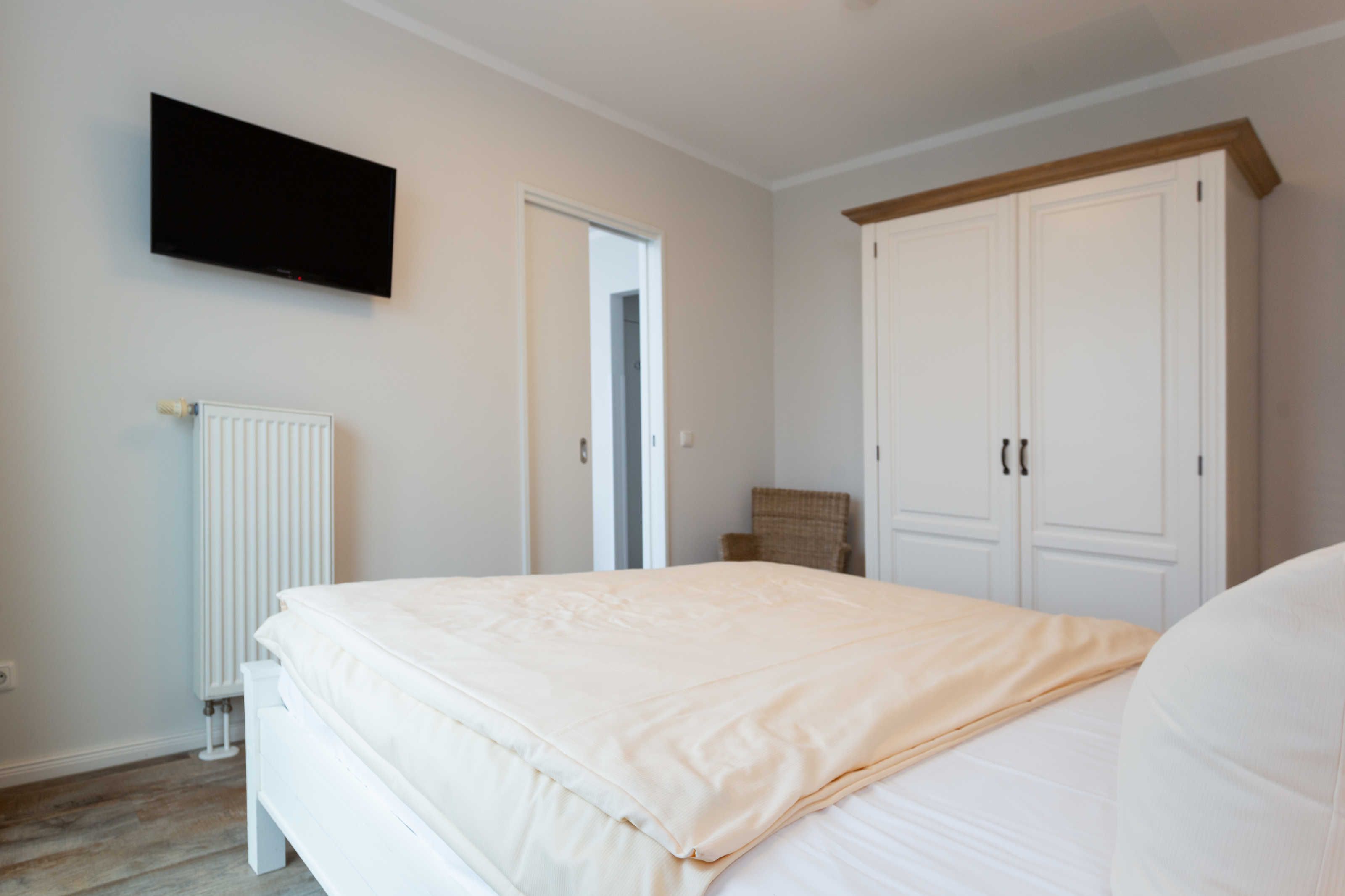 1 Schlafzimmer mit einem Doppelbett, Kleiderschrank und TV