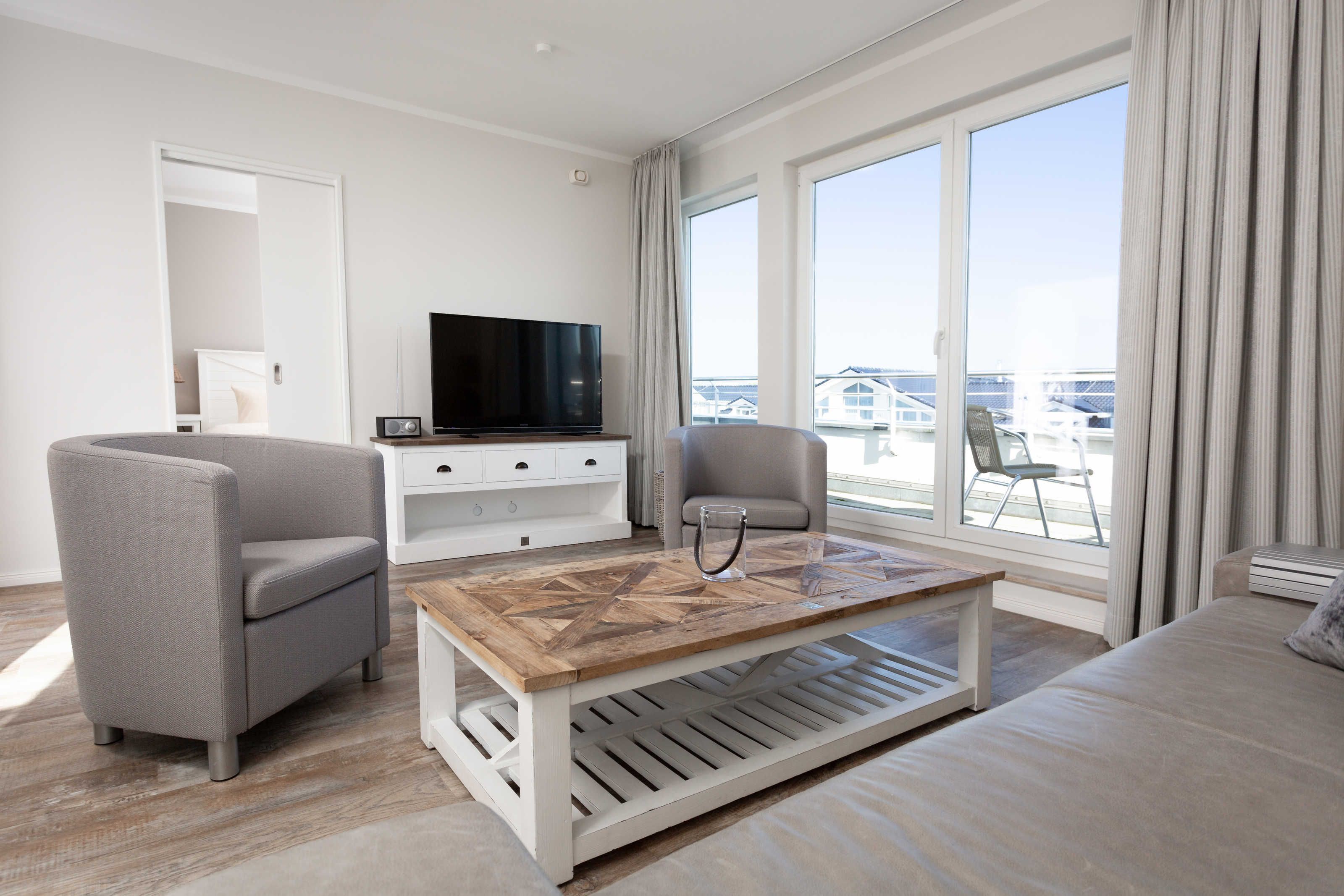 Ferienwohnung mit hochwertiger Möblierung und Balkon für 2-4 Personen mit 1 Schlafzimmer im 3. OG (2 Zimmer / 57 m²):