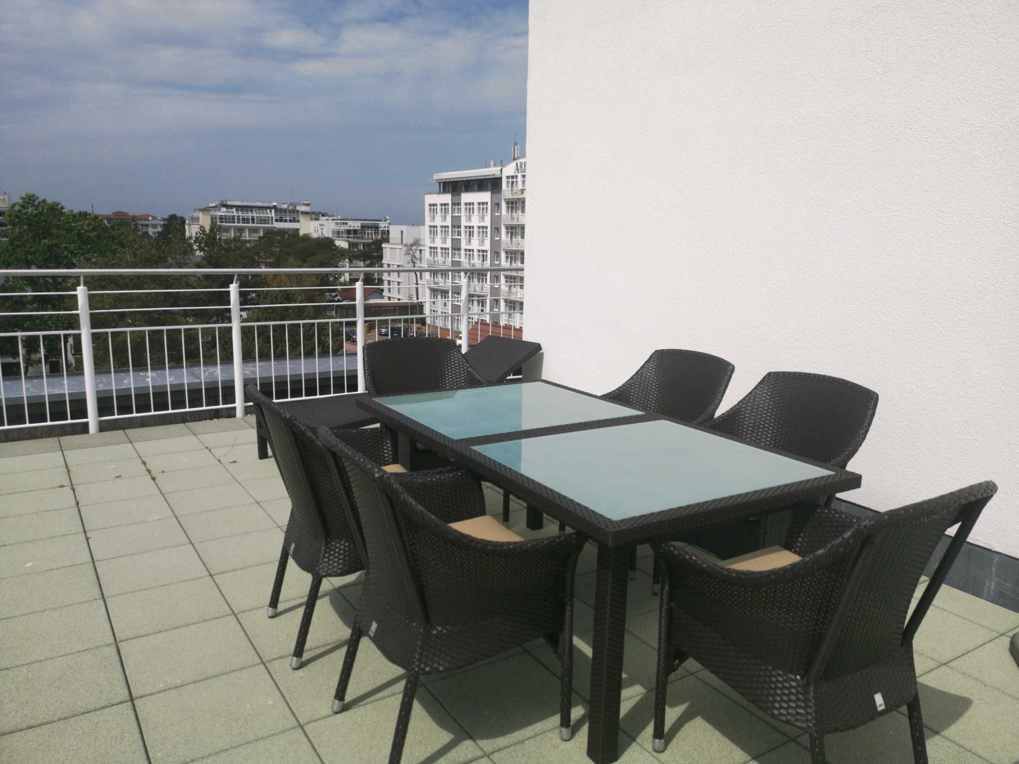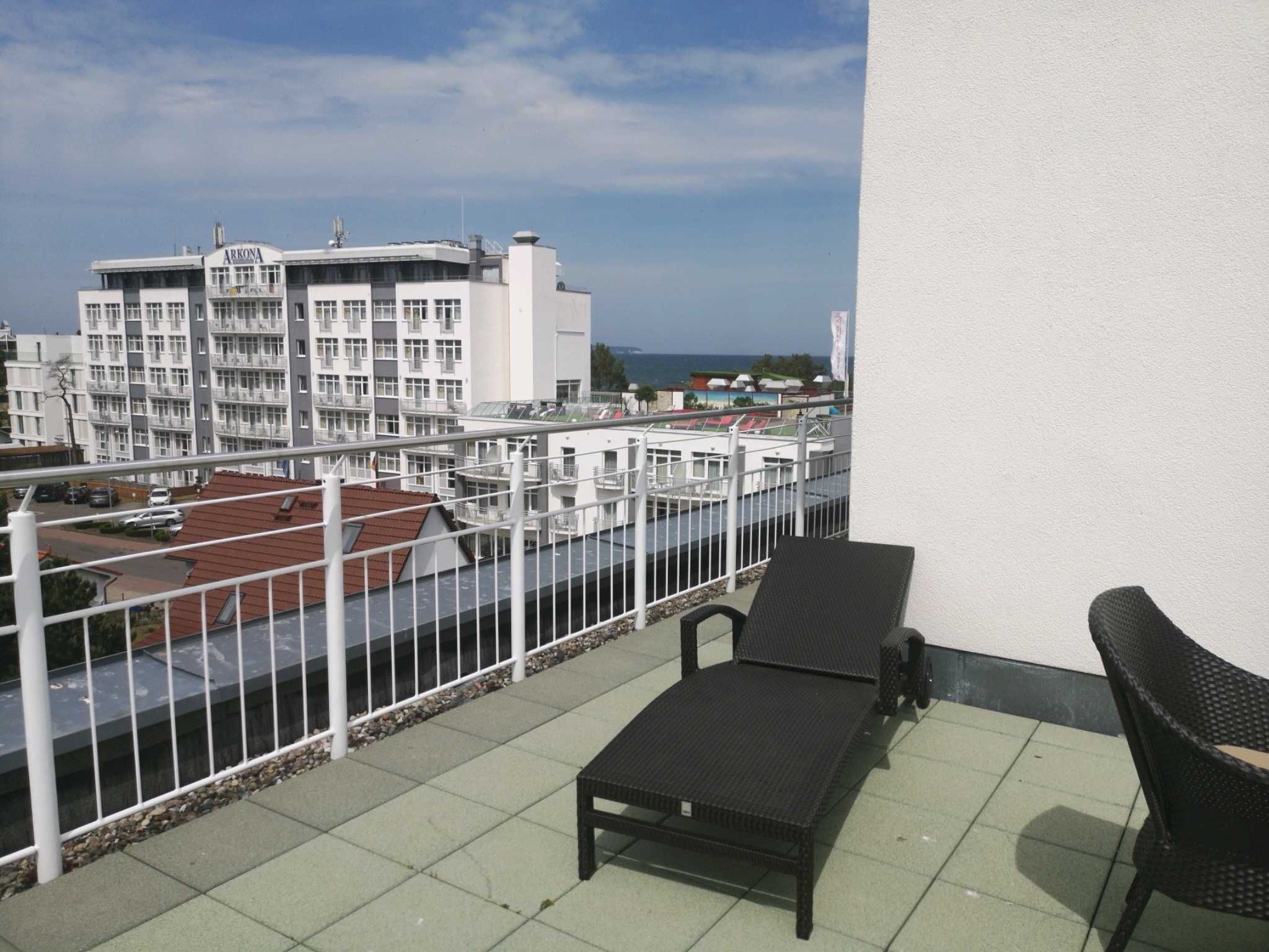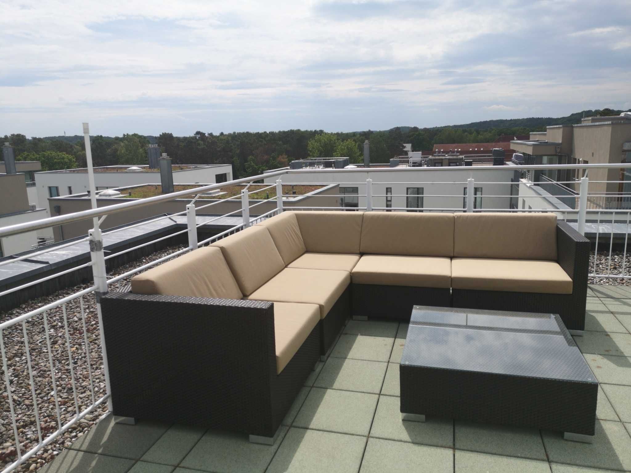 Möblierte sonnige Dachterrasse (40 m², Nordwest Ausrichtung) mit Ostseeblick