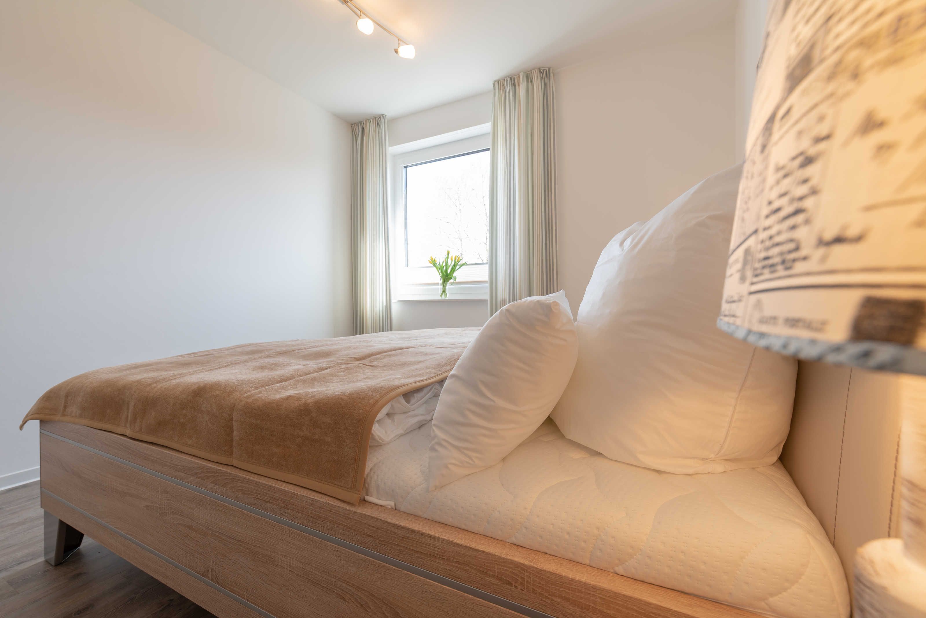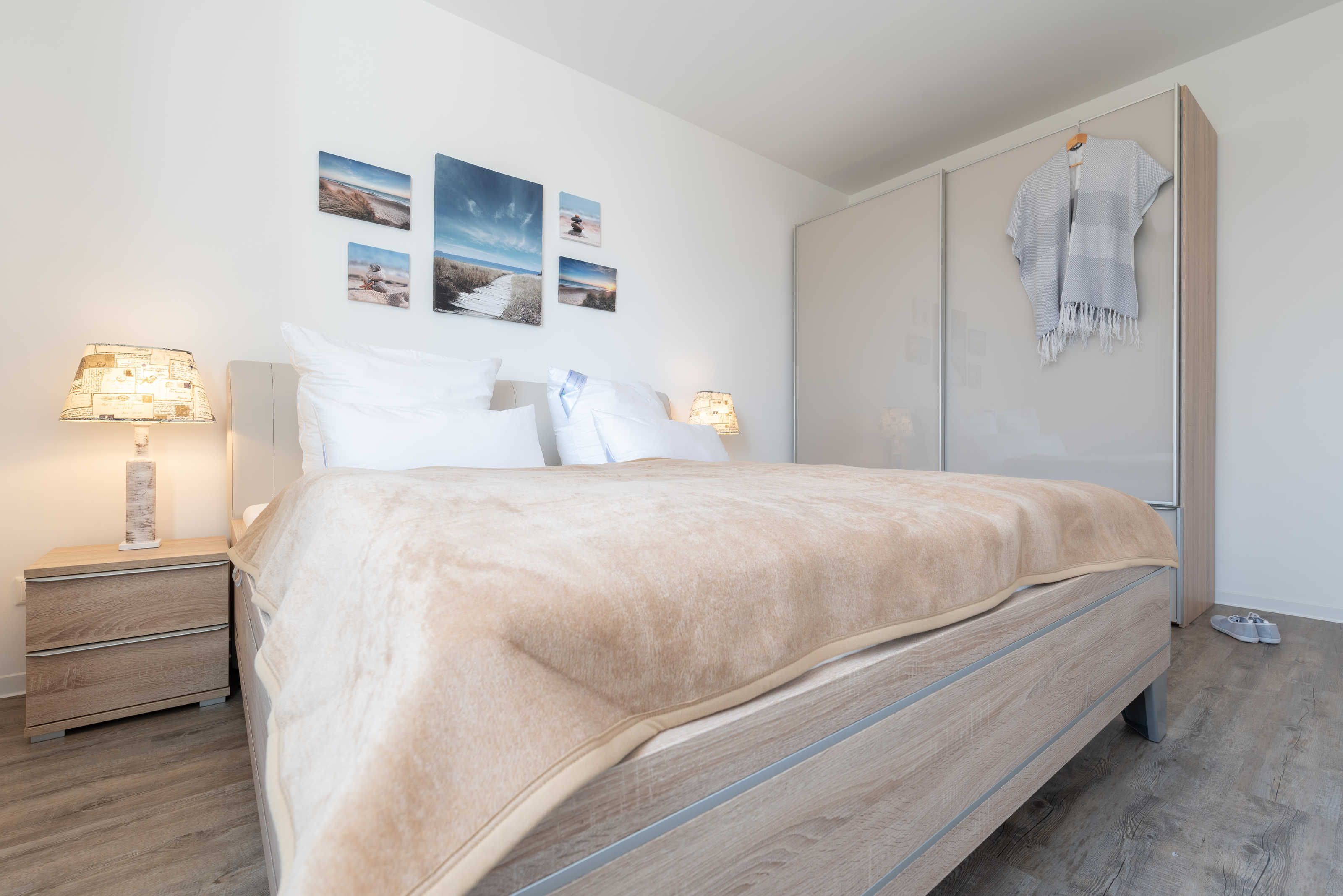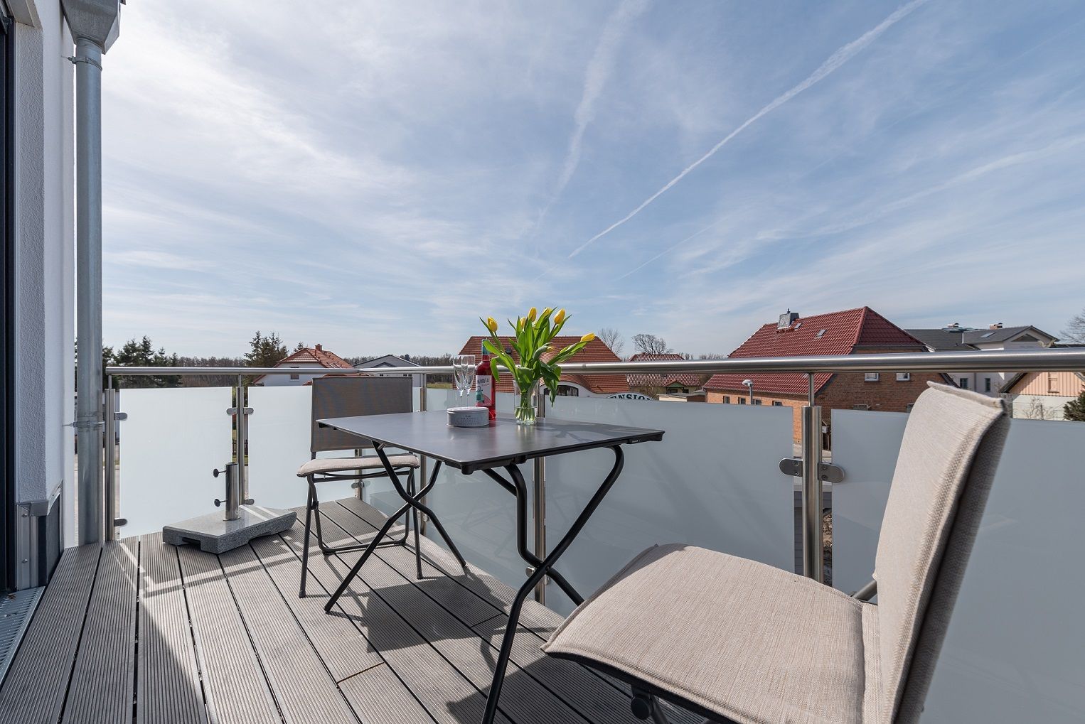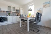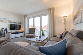 Das Apartment ist im maritimen Stil eingerichtet und verfügt über einen Wohn-/Essbereich mit integrierter Küchenzeile inkl. Kühlschrank, Ceranfeld, Backofen, Mikrowelle, Geschirrspüler und Dunstabzugshaube. Das helle Bad besticht mit ebenerdiger Dusche und eigenem Fenster. In den Schlafräumen sorgen ein Doppelbett (180 x 200 cm) und zwei Einzelbetten (je 100 x 200 cm) für süße Träume. Im Wohnbereich und im Schlafraum mit den getrennten Betten sind Flachbildfernseher installiert. Vom Wohnzimmer gelangen Sie auf den herrlichen Balkon mit Süd-West-Ausrichtung und gemütlicher Sitzaustattung. Ein kostenfreier KFZ-Stellplatz und ein eigener Fahrradabstellraum befinden sich auf dem Grundstück. Eine Fahrradvermietung und ein kleiner Kaufmannsladen sind vor Ort fußläufig zu erreichen. Der Strand von Börgerende ist nur 5 Gehminuten entfernt.