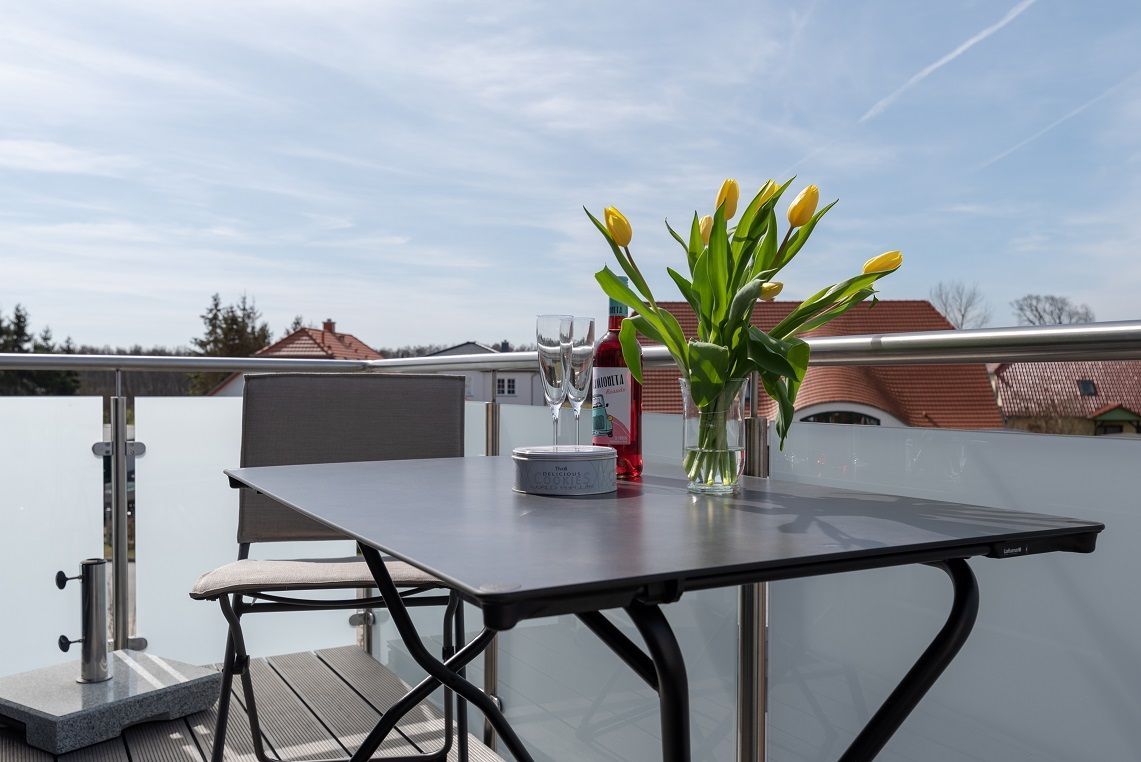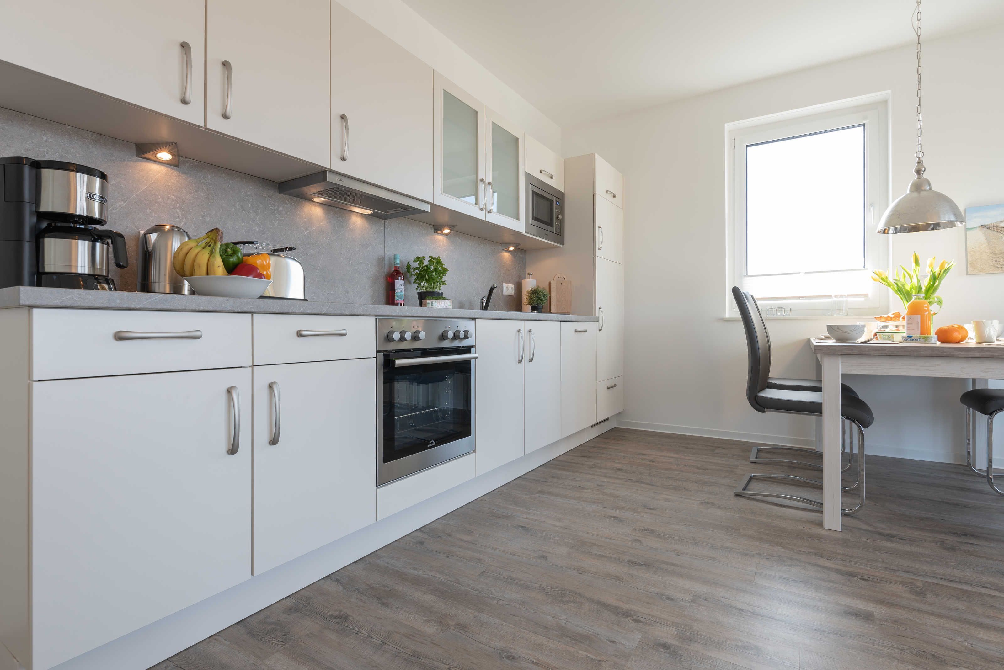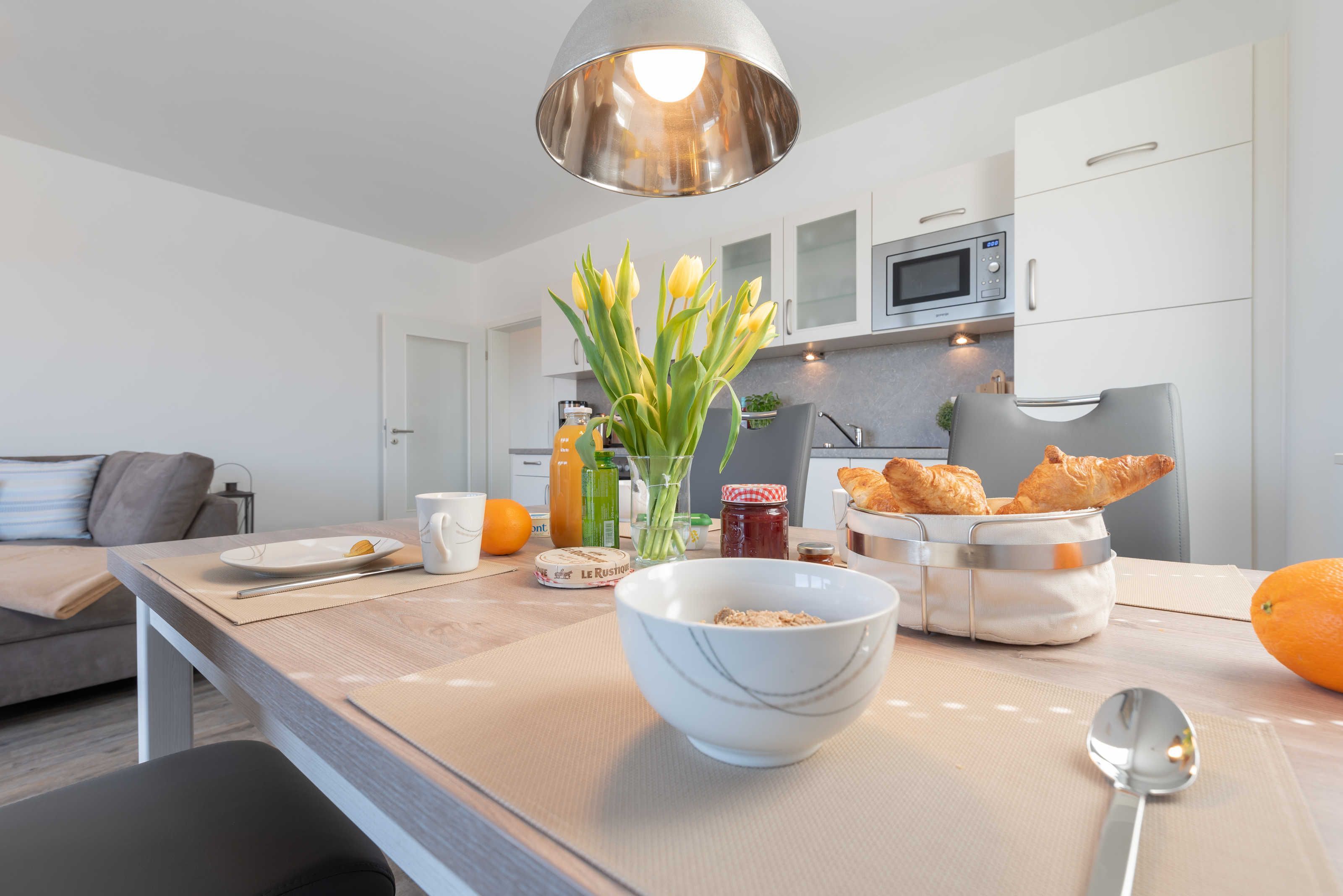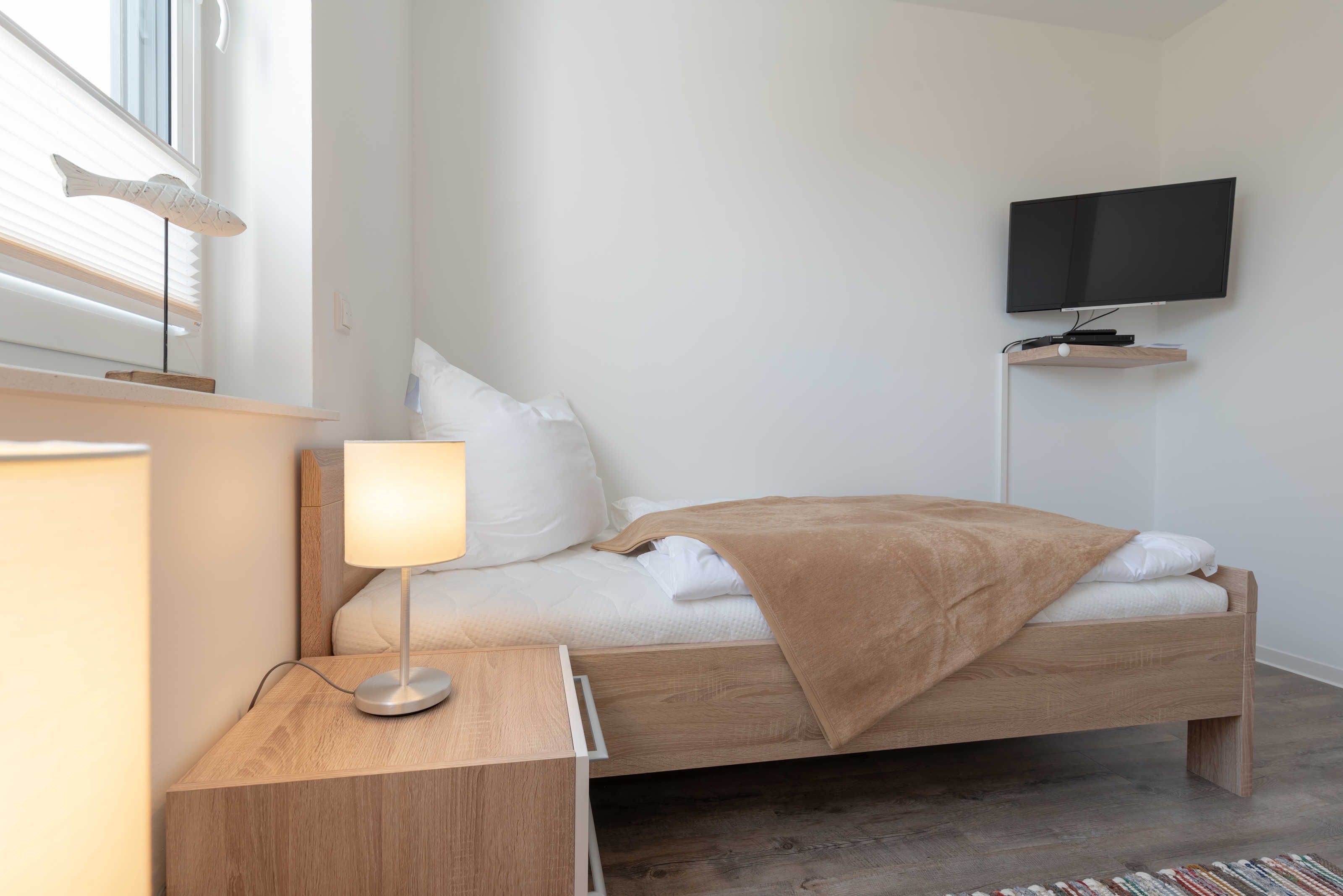 Das Apartment ist im maritimen Stil eingerichtet und verfügt über einen Wohn-/Essbereich mit integrierter Küchenzeile inkl. Kühlschrank, Ceranfeld, Backofen, Mikrowelle, Geschirrspüler und Dunstabzugshaube. Das helle Bad besticht mit ebenerdiger Dusche und eigenem Fenster. In den Schlafräumen sorgen ein Doppelbett (180 x 200 cm) und zwei Einzelbetten (je 100 x 200 cm) für süße Träume. Im Wohnbereich und im Schlafraum mit den getrennten Betten sind Flachbildfernseher installiert. Vom Wohnzimmer gelangen Sie auf den herrlichen Balkon mit Süd-West-Ausrichtung und gemütlicher Sitzaustattung. Ein kostenfreier KFZ-Stellplatz und ein eigener Fahrradabstellraum befinden sich auf dem Grundstück. Eine Fahrradvermietung und ein kleiner Kaufmannsladen sind vor Ort fußläufig zu erreichen. Der Strand von Börgerende ist nur 5 Gehminuten entfernt.