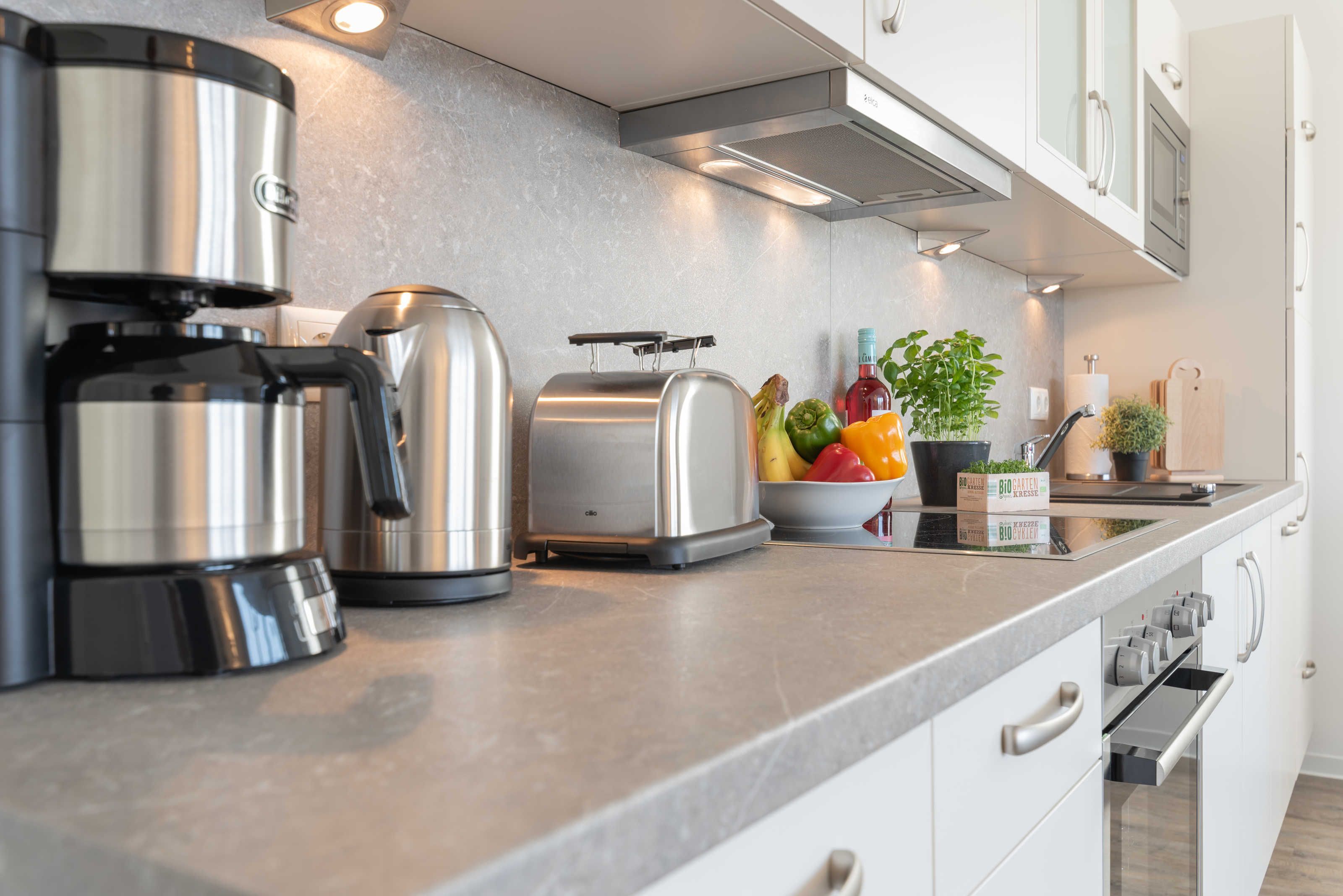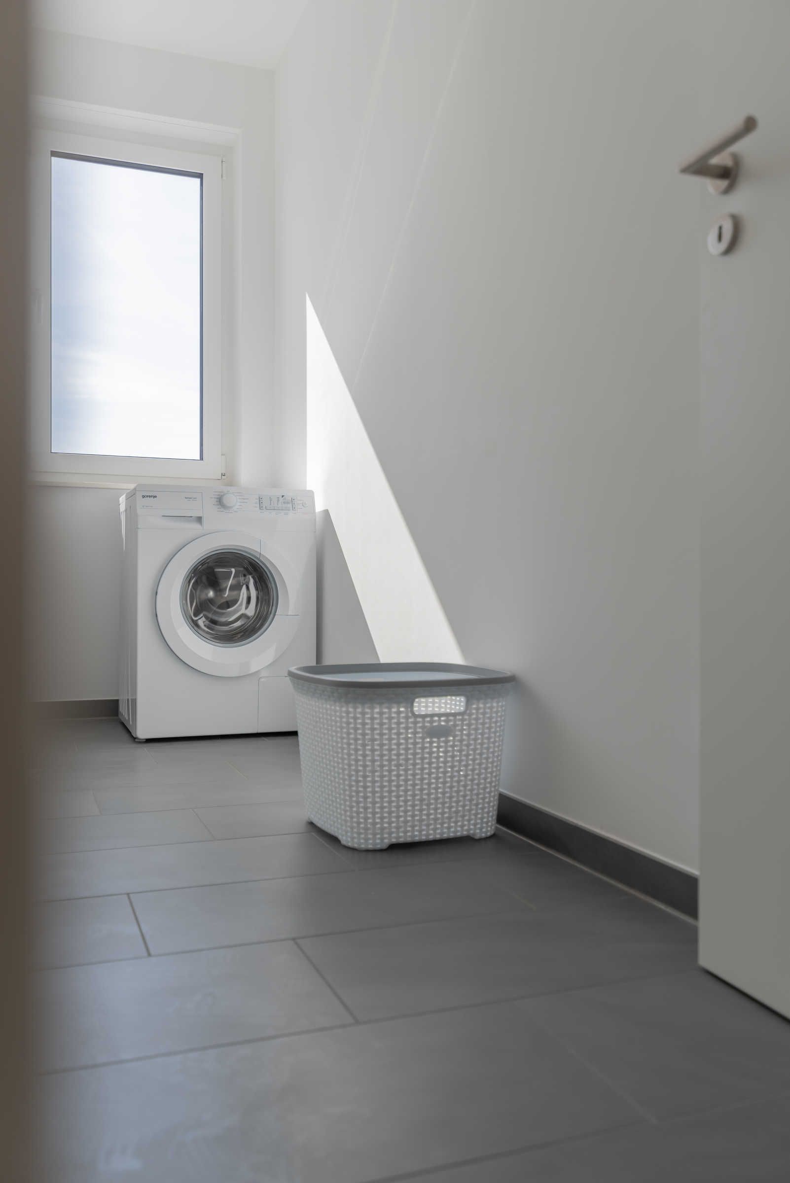 Im integrierten Abstellraum der Freienwohnung befindet sich eine Waschmaschine, um längere Aufenthalte angenehm zu gestalten. Wäscheset, Kinderreisebett und Kinderhochstuhl können kostenpflichtig zugebucht werden.