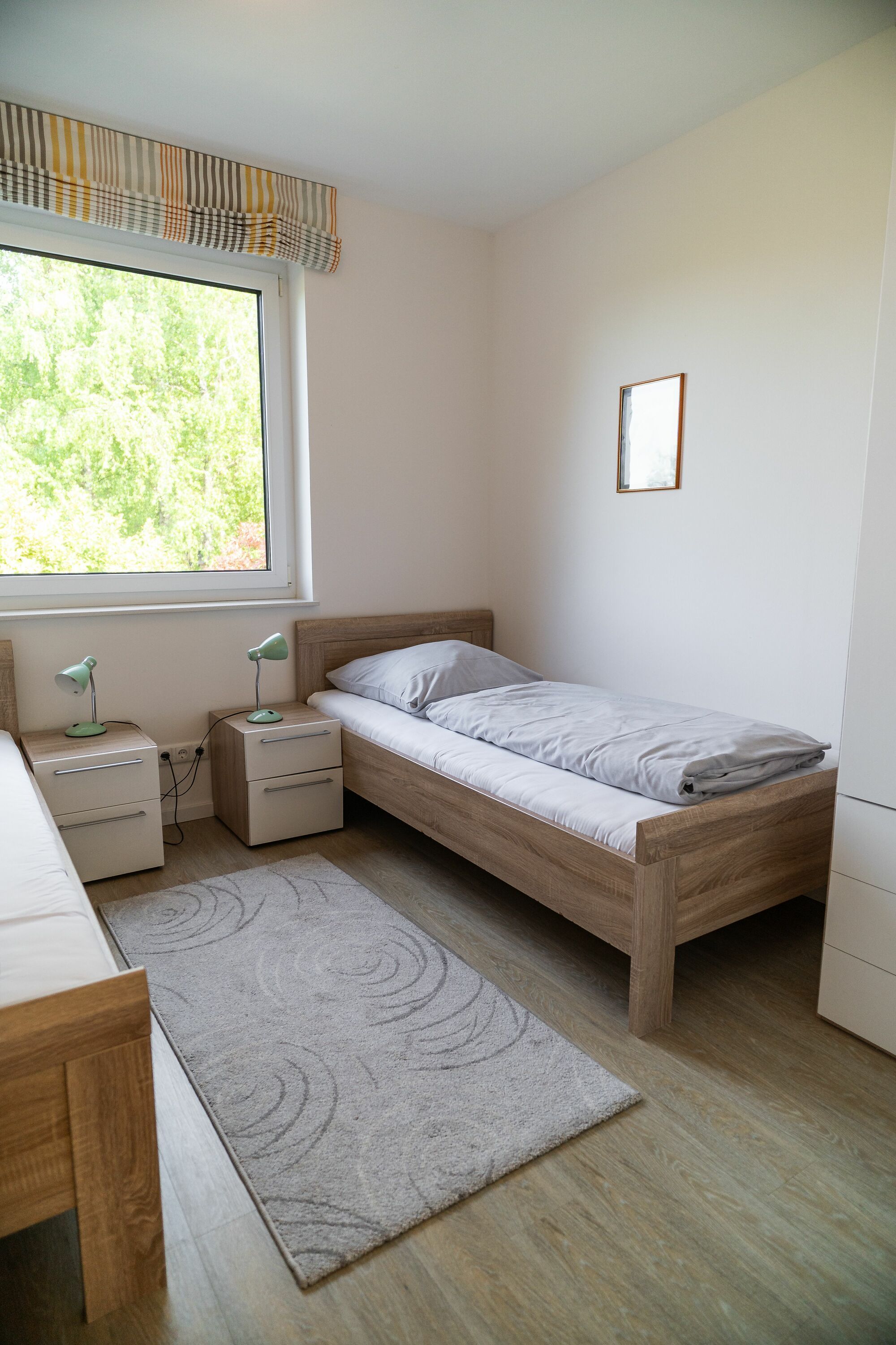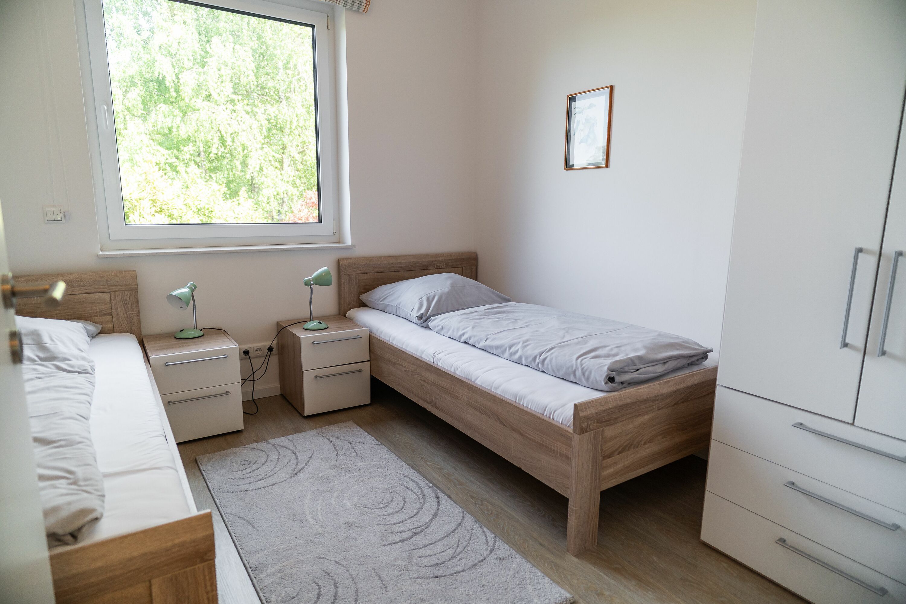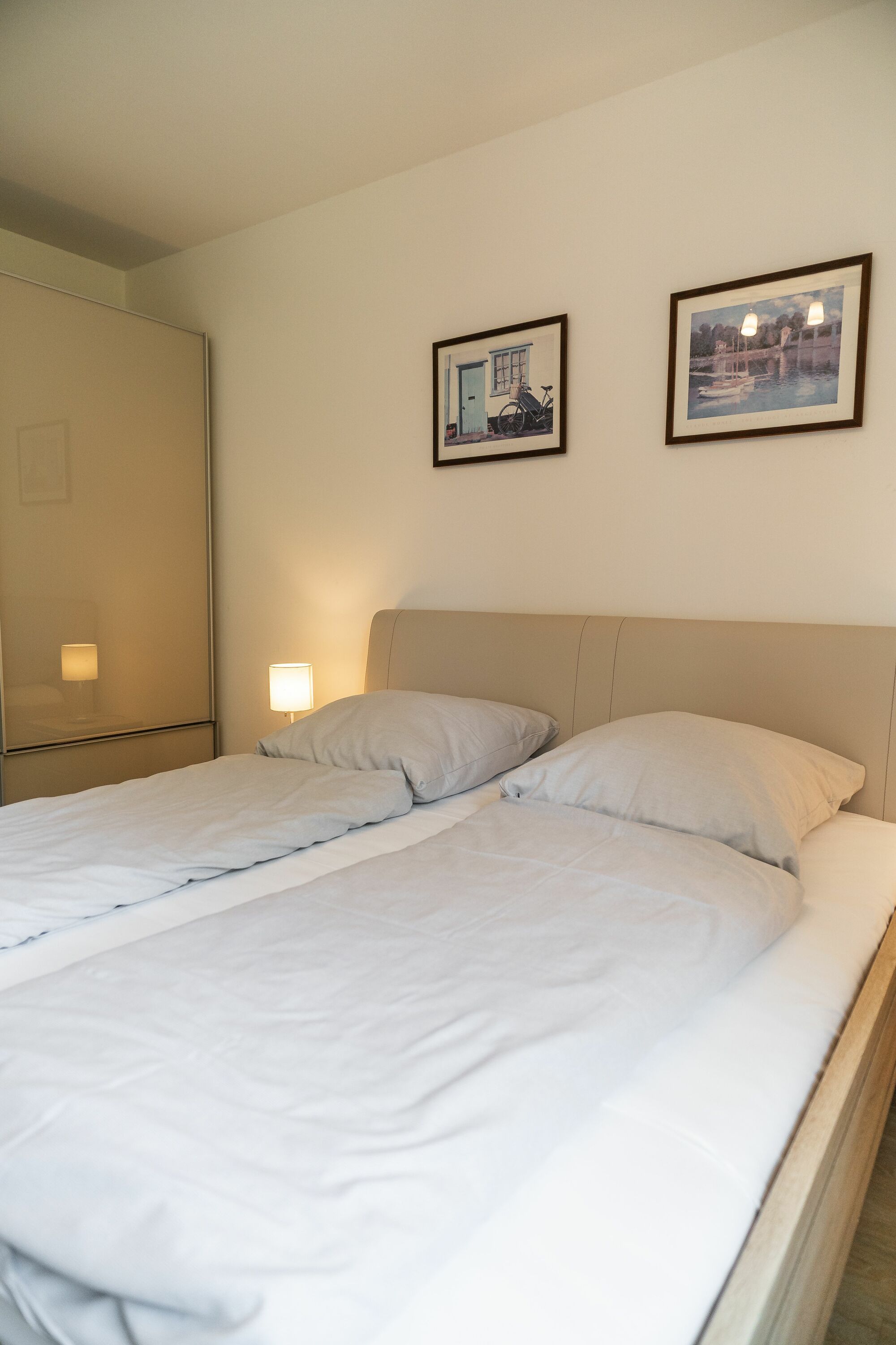Zwei separate Schlafräume laden zum Träumen ein. Im großen Schlafzimmer erwarten Sie neben einem weiteren LED-TV, ein Doppelbett (1,80 x 2,0 m) und ein geräumiger Kleiderschrank. Im kleinen Schlafzimmer befinden sich zwei Einzelbetten, ein Schreibtisch und ein weiterer Kleiderschrank. Die Schlafräume bieten genug Platz für ein Kinderreisebett und können durch Rollläden gut abgedunkelt werden. An den Herbst- und Wintertagen sorgt in allen Räumen eine Fußbodenheizung für angenehme Wärme und Gemütlichkeit.